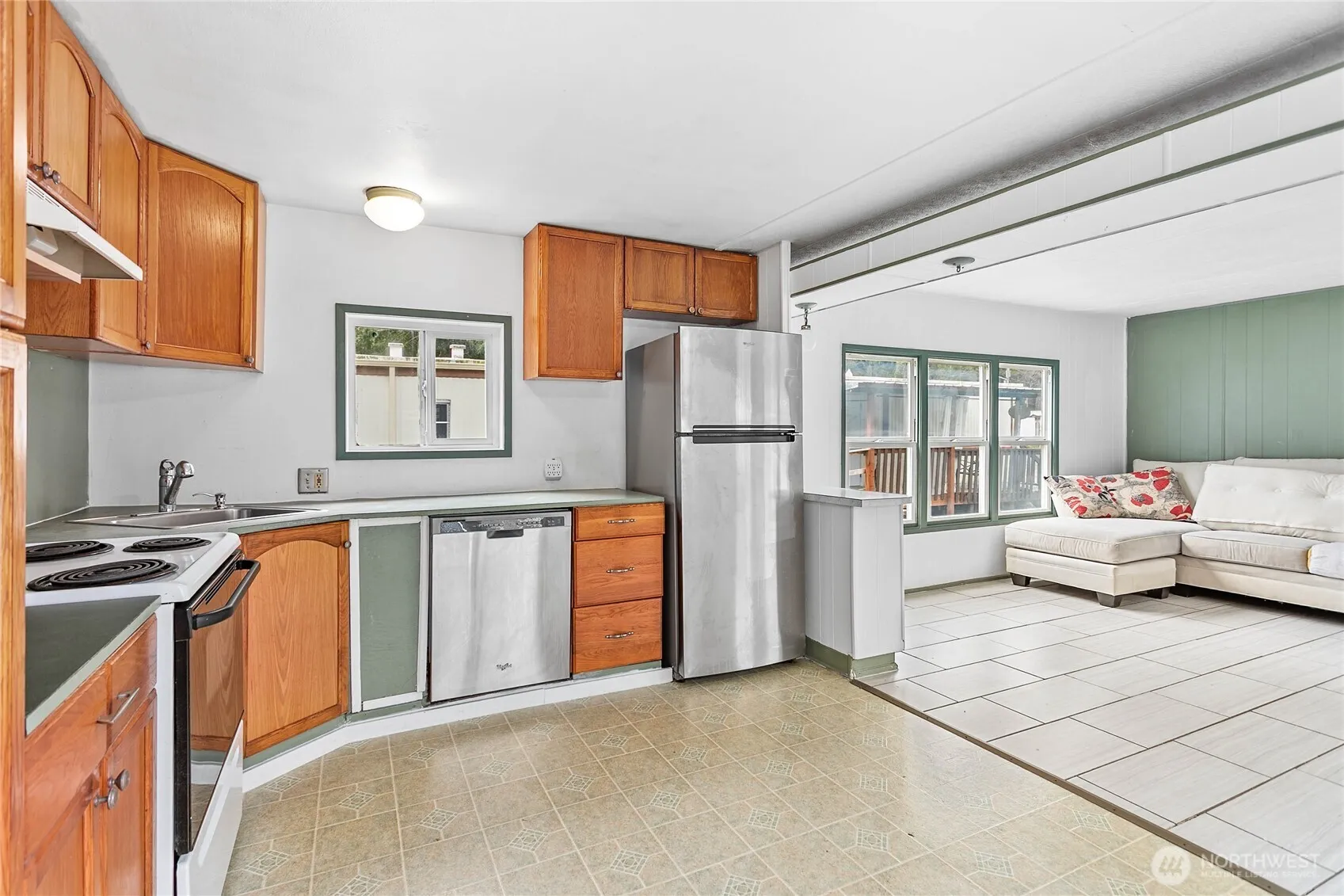Enjoy lakeside living in this 2+ bedroom single-wide home with bonus den or potential 3rd bedroom in the desirable Calmor Cove Community on Lake Samish. Flexible layout perfect for guests, a home office, or extra living space. Recent updates include new windows, newer water heater, newer furnace, new bathroom sink and shelf, some fresh paint, new carpet, and a stainless steel refrigerator and dishwasher. Shed in the back provides additional storage and a plug in for a generator for the house. Sign up for lake moorage and enjoy boating, swimming, or relaxing just steps from your door. Bonus- there is a natural trail right behind the home! Space rent includes water with a new water filter system upgrade, sewer, and garbage. Well-priced and one of the most affordable ways to enjoy lakeside living, ideal for full-time living or a weekend getaway. Calmor Cove is a well-maintained, all-ages, pet-friendly community offering a peaceful waterfront lifestyle with a private beach, space for your canoes and paddleboards, new community dock, updated club house, and nature trail, just minutes from I-5 and Bellingham amenities.