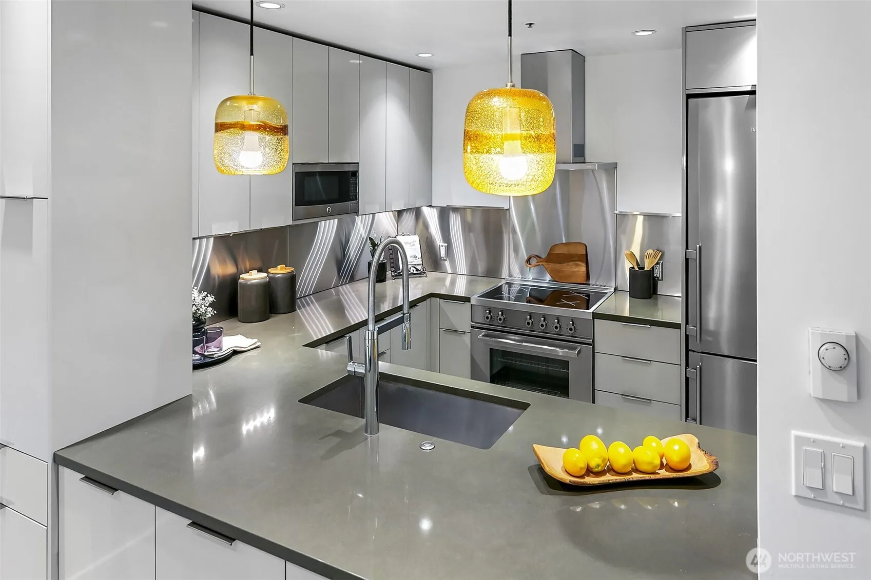 Live at the epicenter of Seattle’s most iconic destinations – just steps from Pike Place Market, the Seattle Art Museum, the Four Seasons, and the revitalized Waterfront Park. Located in the renowned 98 Union Condominium, designed by Olson Sundberg Architects, this concrete-and-steel building blends timeless Seattle architecture with full-service urban living, including 24-hour concierge, secure parking, storage, elevators, atrium, and resident amenities. This sophisticated two-level residence is quietly positioned on the east side with entry from the atrium. The main level features an updated kitchen, dining area, open living space, half bath, and in-unit laundry – ideal for entertaining or everyday living. Upstairs, the private retreat includes a spacious primary bedroom with full bath, a second bedroom, and an additional ¾ bath. The home offers a sleek, modern aesthetic with a flexible layout perfect for a primary residence or refined pied-à-terre. HOA dues cover all utilities, internet, and cable, and include one parking space and ample storage. Pet-friendly with up to two pets allowed. Enjoy the ease, energy, and walkability of downtown Seattle living at its finest.
