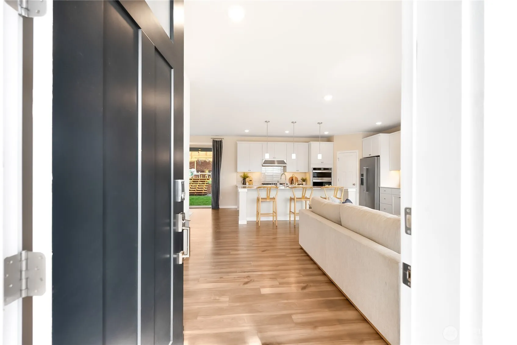 Welcome to Horizon at Semiahmoo, where this 2023-built home lives better than new. Meticulously maintained, the home features a main-floor guest suite with adjacent bath and an open-concept living area designed for everyday comfort and entertaining. The kitchen is well-appointed with a large island, walk-in pantry, and five-burner stove, and flows seamlessly into the great room with a gas fireplace and south-facing windows that fill the space with natural light. The dining area opens to a covered patio and fully fenced backyard, enhanced with a newly added deck, perfect for summer evenings. Upstairs, the primary suite enjoys beautiful Bay and Mt. Baker views from its private covered balcony and includes dual vanities and a spacious walk-in closet. Three additional bedrooms, a spacious bonus room, a full bath, and a laundry room with cabinetry and washer/dryer complete the upper level. Custom blinds, completed landscaping, and a two-car garage with additional storage space mean the work is done, simply move in and enjoy. Pre-inspected for added peace of mind, with report available upon request.