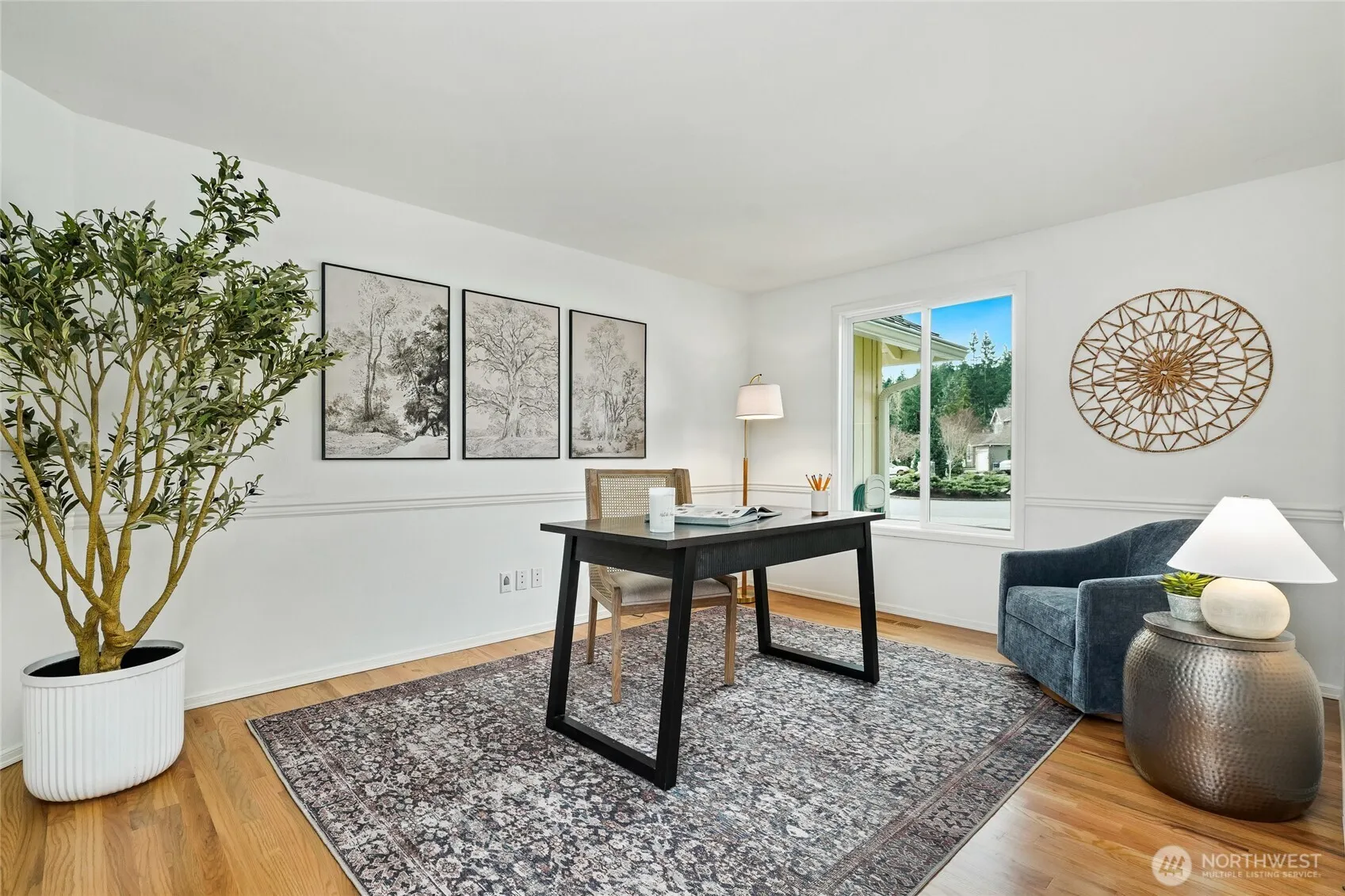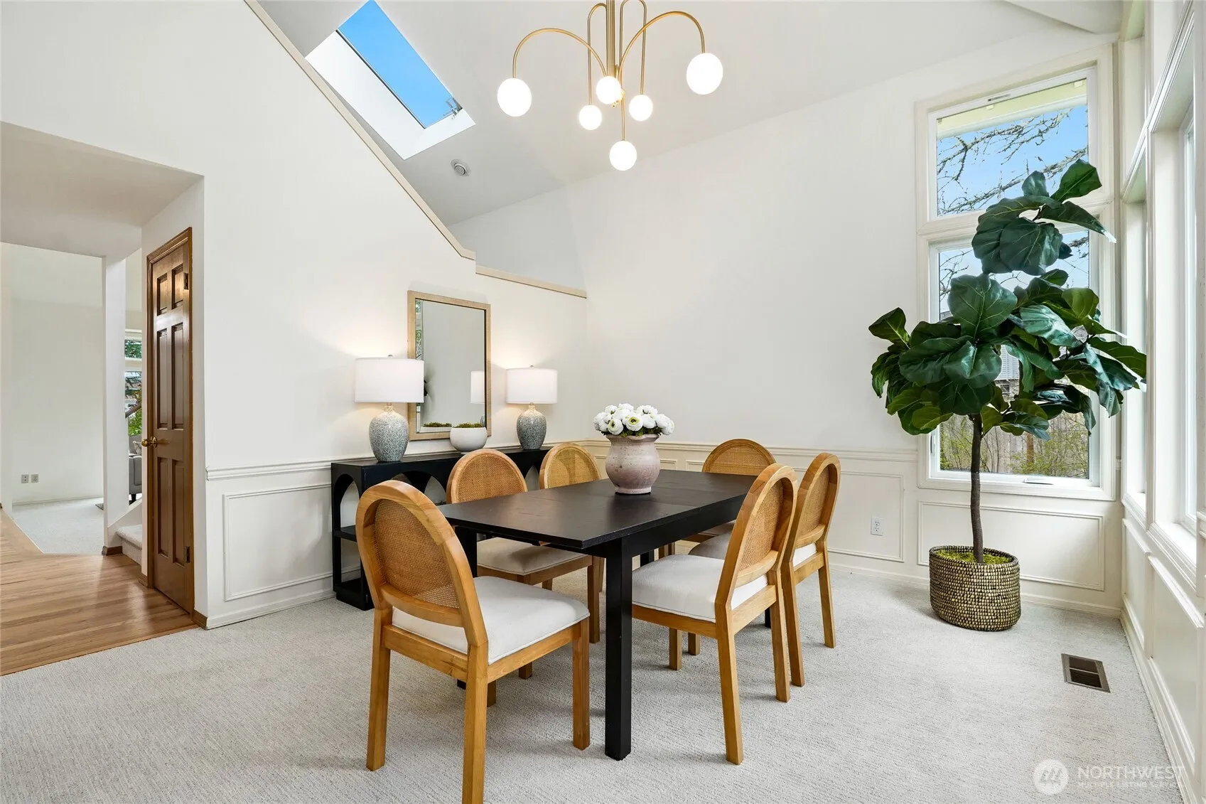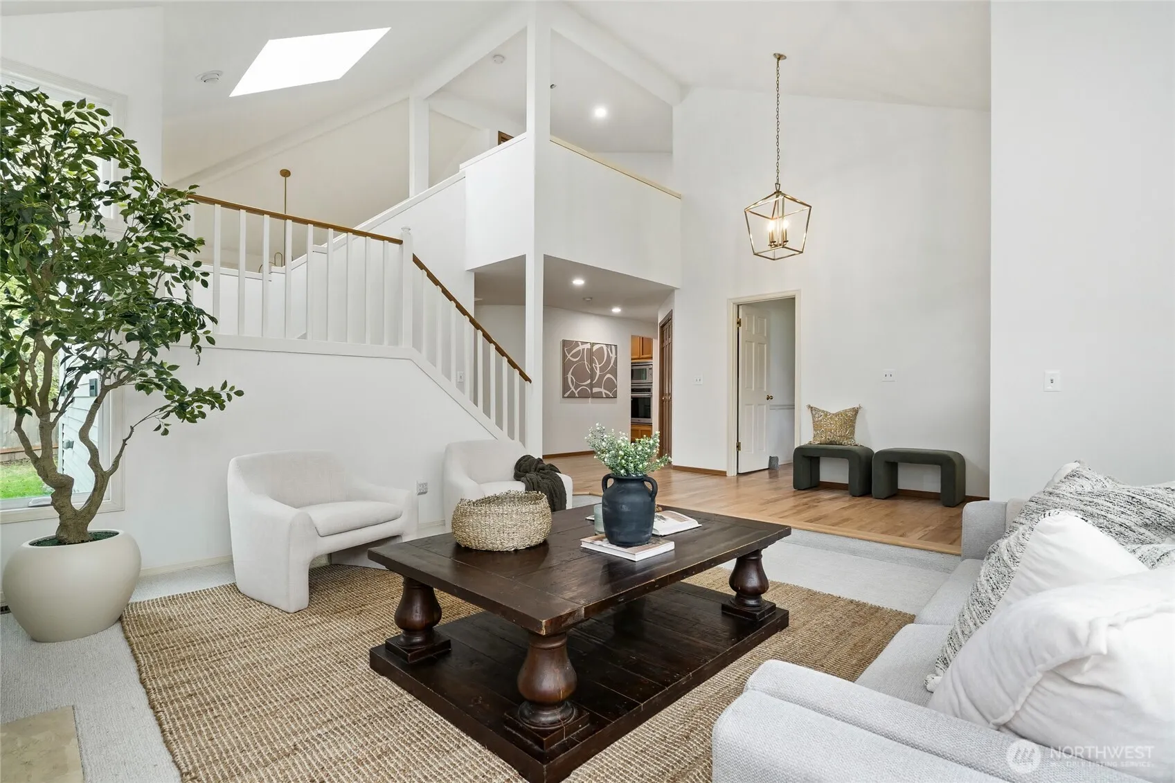 Located in the sought-after Hampton Woods community, this beautifully updated Murray Franklyn home showcases extensive recent improvements throughout. Updates include all-new windows, a beautifully renovated primary bathroom, refinished hardwood floors, new carpet, fresh interior paint, custom lighting, and an updated powder room. The spacious layout features four large bedrooms on one level & generous living spaces with vaulted ceilings, including formal living & dining rooms, plus a comfortable family room. The kitchen offers newer appliances & is well suited for everyday living & entertaining. Step outside to a private backyard oasis featuring stunning pesticide-free gardens with mature fruit trees including fig, apple, and pear, along with raised garden beds filled with a variety of berries. A gardener’s delight with potting shed, potting sink, and gazebo. Three seasons of blooms create beautiful color throughout much of the year. Major system upgrades include a newer HVAC system, hot water tank, upgraded insulation, Presidential roof, and new garage doors with ultra quiet garage door openers with built-in Wi-Fi and myQ technology. Situated on a quiet cul-de-sac, the Hampton Woods community offers resident amenities including tennis courts, basketball court, park, and playground just down the block. Top Rated Lake Washington School District. Short walk to Mead Elementary. Convenient access to the newly opened light rail provides easy commuting to Bellevue and Seattle.