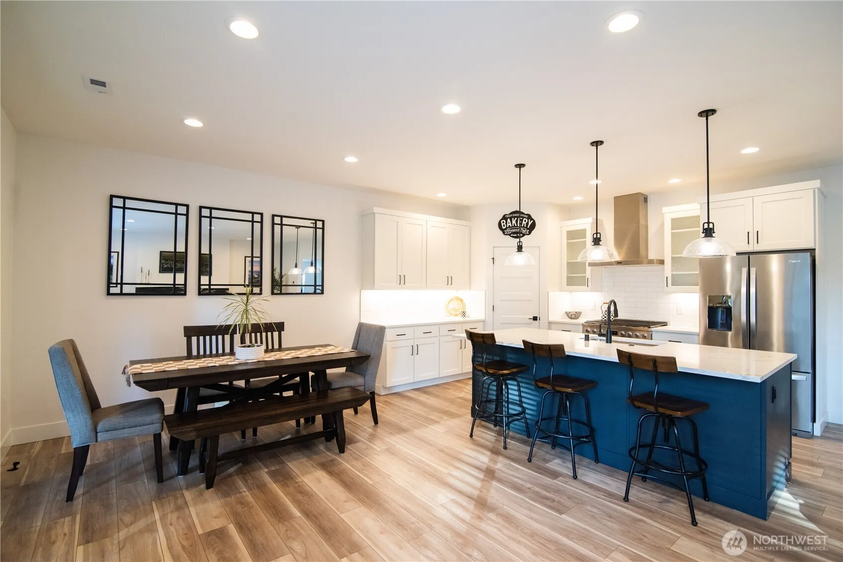 Stunning 2022 modern farmhouse in the desirable Snohomish School District offering 2,915 sq ft of thoughtfully designed living space. This 4-bedroom, 3.5-bath home features a bright open-concept main level with a private den/office and a gourmet chef’s kitchen complete with quartz countertops, oversized island with seating, high-end appliances, designer tile, and walk-in pantry.Spacious primary suite includes a luxurious 5-piece bath with double vanity and a large walk-in closet. Upper level offers two additional bedrooms, while the lower level provides a private bedroom, full bath, and bonus room, ideal for guests, multi-generational living, or a media space. Enjoy year-round comfort with A/C, heat pump, gas fireplace, and tankless hot water. Smart-ready with high-speed internet wiring and EV charging in the 2-car garage. Fully fenced and landscaped 5,227 sq ft lot with covered outdoor space and gas hookup, perfect for entertaining. Parking for up to 6 vehicles. Prime location just minutes to shopping along Bickford Avenue with quick access to U.S. 2 and I-5, making commuting easy while enjoying the charm of Snohomish living.
