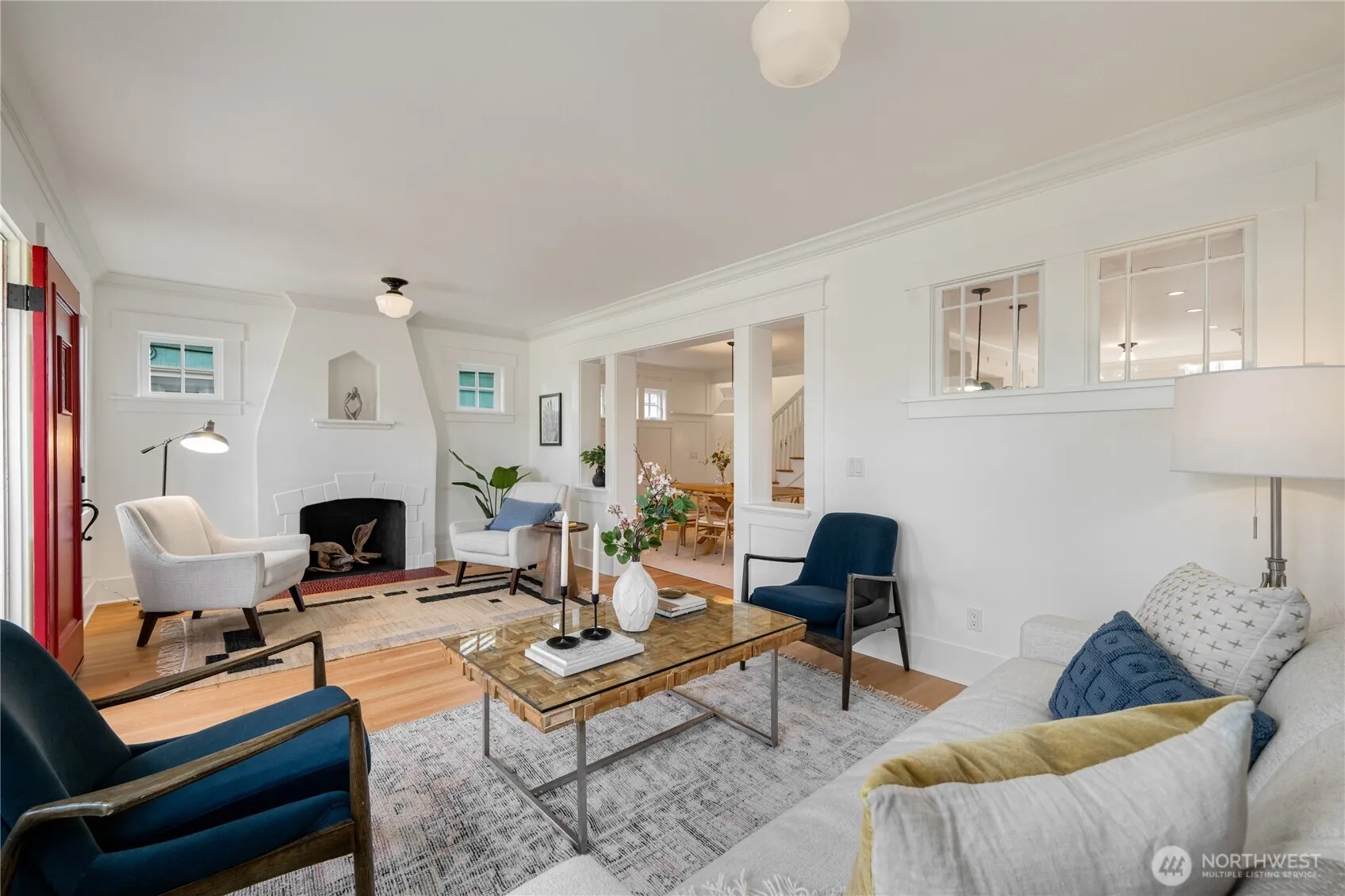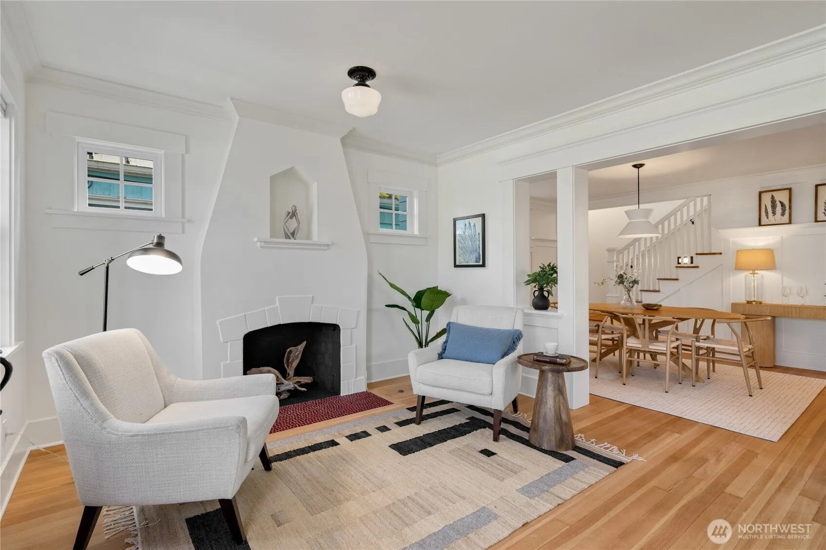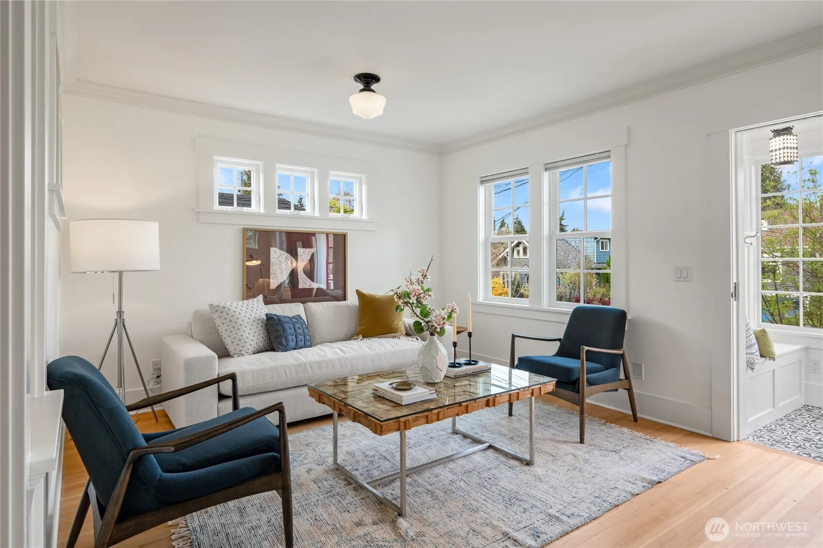 Originally built in 1929, this home is one of Seattle’s twelve Lynne White restorations, known for their uncompromising quality and craftsmanship in every detail. Flat panel wainscoting and artist-installed tiling greet you in the foyer; this opens into an elegant, light-filled great room with newly refinished douglas fir floors and a traditional wood-burning fireplace. The open floor plan creates a natural gathering space, ideal for hosting generously sized parties or drawing people together on ordinary evenings. Every detail has received careful attention, evidenced by exquisite millwork, precision joinery, an oversized farmhouse sink, and marble countertops. The main floor is completed with a south-facing sunroom (offering endless possibilities as an office, guest room, music room, library, or playroom), window seats with storage, a powder room, and French doors that open to a deck and fenced back yard. Outside, you’ll find plumbing for a BBQ, a hot tub nestled under Norway spruce trees, a fire pit, and professional landscaping and hardscaping. Upstairs, the primary suite includes a bonus sitting room with gas fireplace (an ideal office or nursery), beadboard wainscoting on the ceiling, and a beautiful walk-in shower. An additional bedroom opens to an ensuite bath. In the basement: a 4th bedroom, family room, and full bath. The oversized attached garage includes an additional storage closet. All on a flat, quiet street three blocks to all things Phinney Ridge!