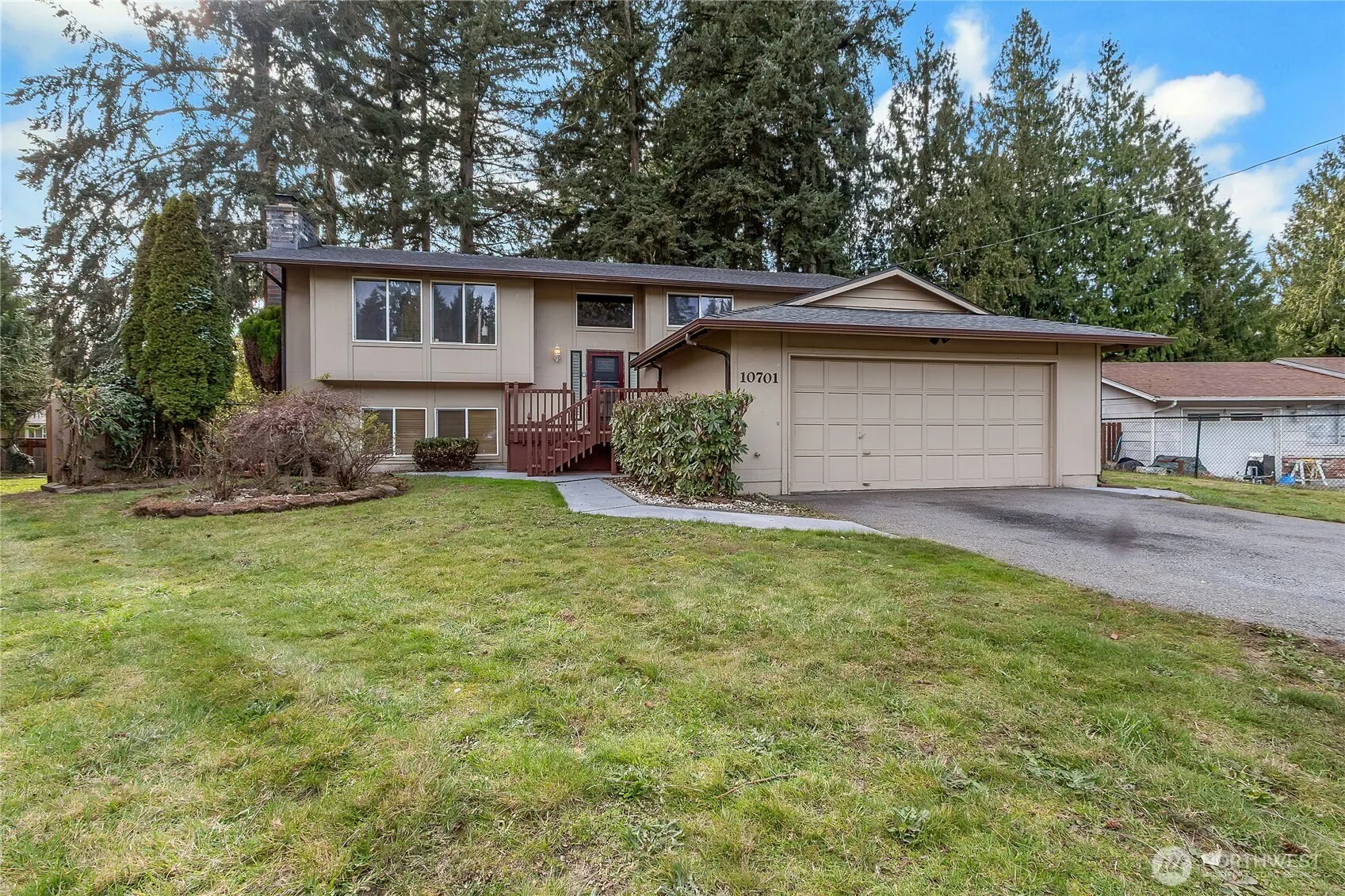 Tucked at the end of a private cul-de-sac, this large home sits on a generous .33-acre lot offering space, privacy, and versatility. The main level features a bright living room with fireplace, a once updated kitchen with granite counters, and seamless access to an expansive deck ideal for entertaining. The primary suite includes its own bath and ample closet space, with additional bedrooms well-sized for everyday living. The lower level offers a spacious rec room with fireplace, flexible bonus space, and direct access to the fully fenced backyard complete with patio, outbuildings, and mature landscaping including fruit trees. Major improvements include a newer septic system and a newer roof, providing peace of mind for years to come. This home is conveniently located near schools, shopping, and commuter routes while maintaining a quiet, tucked-away feel. A rare combination of lot size, updates, and privacy in a desirable South Hill location.