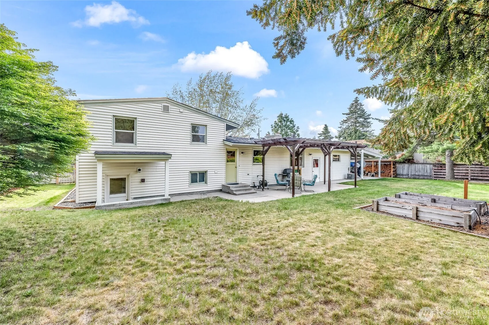 This inviting home features main-level living and a spacious kitchen with original hardwoods, ample storage, and room to gather. The backyard is your own escape with a shaded pergola patio and raised beds on drip irrigation, ideal for gardening or unwinding. Downstairs, a large bonus room with tons of storage and a woodstove creates the perfect hangout space. Bring your toys, there’s a 2-car garage plus a covered, gated carport for a boat or extra vehicle. Tucked on a quiet street with a central location close to schools, shops and parks. Pre-inspected.