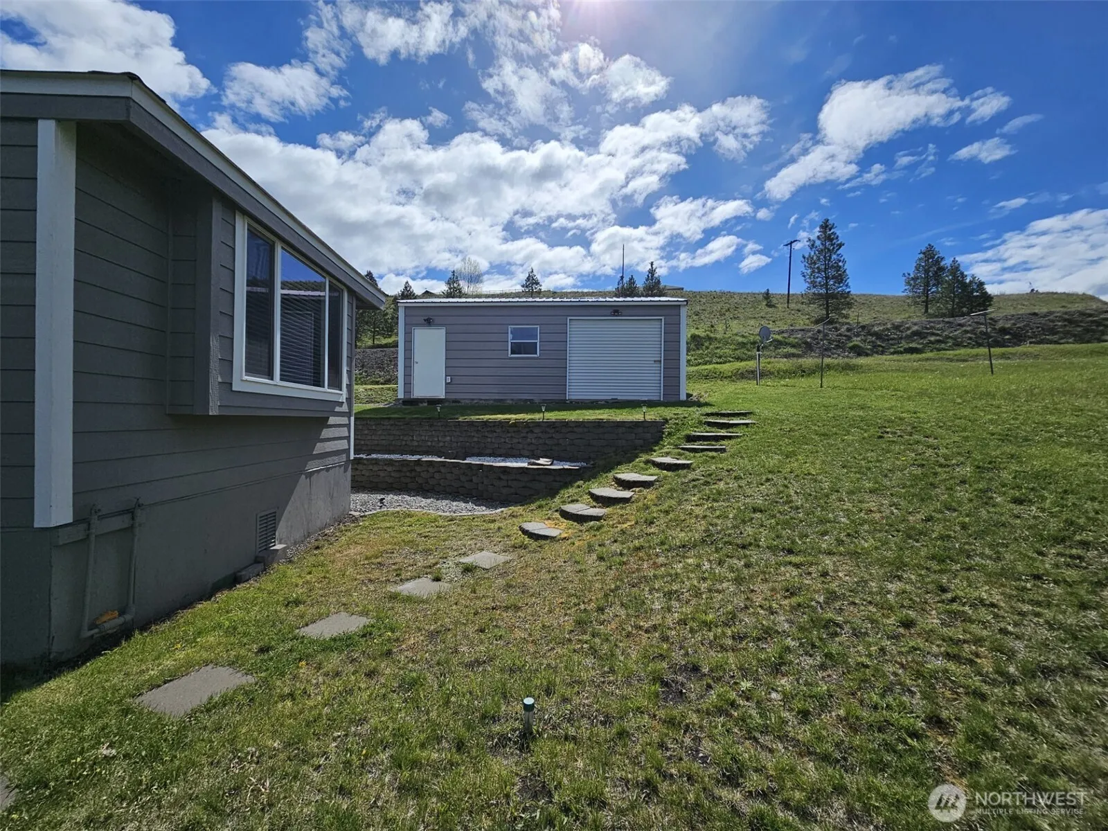 Lake front home in Julian Bay on Curlew Lake. Beautiful views with home sitting only 50 ft off lake. Private floating dock along 100 feet of lake front. Two bedroom, 2 bath manufactured home with 3 bedroom septic. system. All new stainless-steel appliances, new counters, granite island, new windows, siding, flooring and more. New electrical panel, furnace & heat pump. New two car detached garage with 3 roll up doors, walk through door, including 4 windows & cement floor. Plenty of off-street parking as well. Beautiful rockery on lake side with block landscaping throughout yard. Great opportunity to have fantastic lake front living year-round or a vacation home. Quiet area just off Kiwanis Road. County says will allow new home in same location 50 ft off lake if desired.
