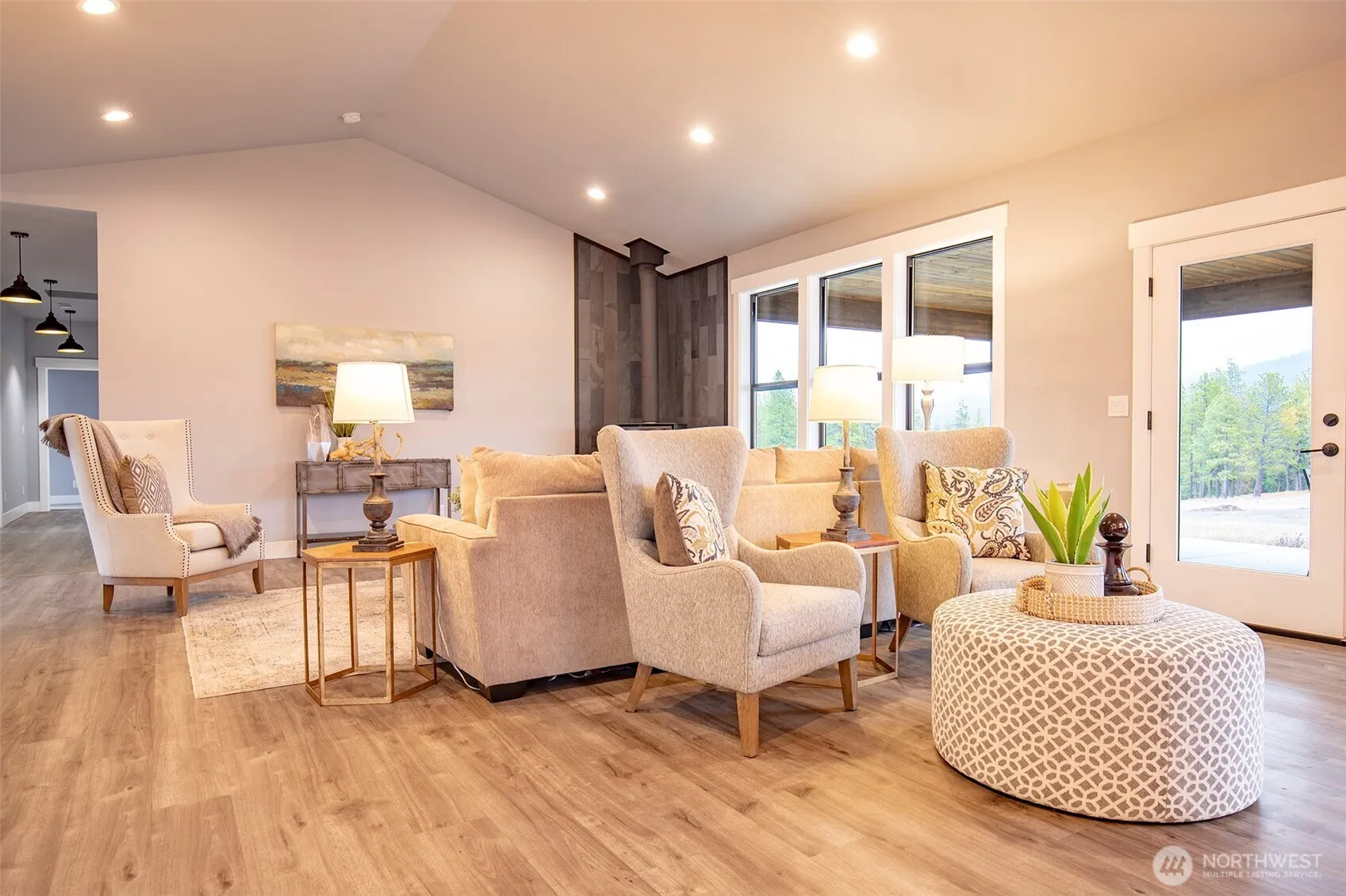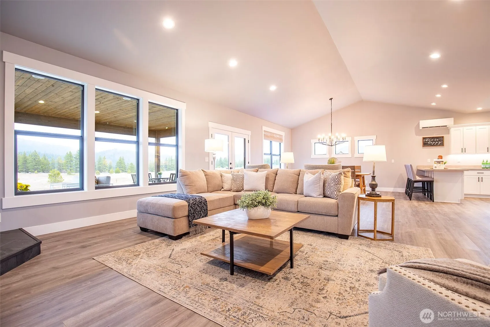 Set on 3 private acres in the sought-after Swauk/Teanaway area, this 2022 resale offers sweeping, unobstructed mountain views and true retreat-style living. The open-concept design centers around a light-filled great room with vaulted ceilings, large windows, and a wood-burning stove for cozy evenings. The kitchen is built for gathering and serious cooking alike, featuring stainless steel appliances, custom cabinetry, quartz countertops, gas cooktop, double ovens, two refrigerators, and a walk-in pantry. The dining area opens to a covered patio—perfect for year-round enjoyment. The spacious primary suite captures more mountain views and includes a spa-inspired bath with double vanity, heated floors, large walk-in shower, pedestal soaking tub, and generous walk-in closet. Two additional bedrooms, a full bath, and a dedicated office provide flexibility for guests or remote work. A practical drop zone and utility room connect to the oversized two-car garage. Additional features include a tankless water heater, ductless mini-split system, and more. HOA allows short-term rentals, including VRBO. Welcome Home!