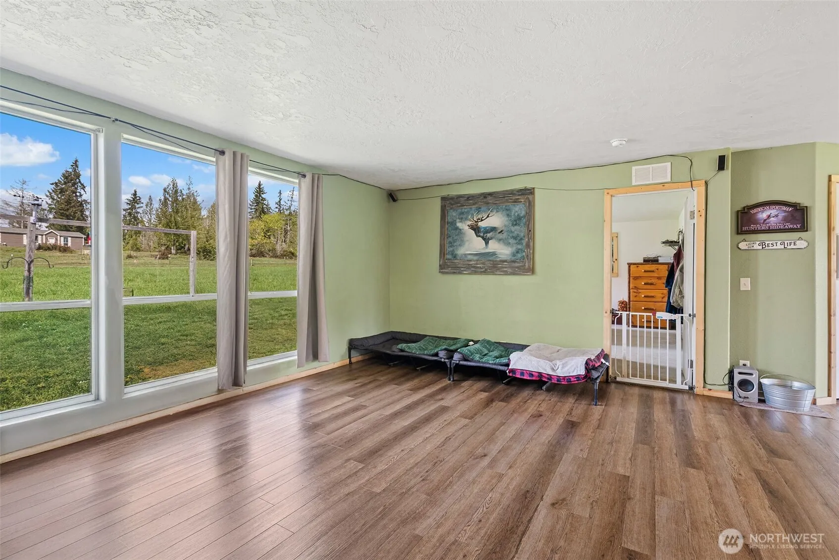 Welcome to your private country retreat in Grapeview, Washington. Nestled on 5 beautiful acres at the end of a quiet dead-end street, this fully functional active farm offers the perfect blend of comfort, space, and rural charm. The 1,408 sqft home features 2 bedrooms, with bonus room and 2 bathrooms, with an inviting living area where large windows fill the space with natural light, creating a warm and airy feel throughout. Outside, the property is thoughtfully set up for farm and equestrian living. Enjoy a 3-stall barn complete with hay storage and water, chicken coop, round pen and expansive pasture land ready for animals. Garden enthusiasts will appreciate the raised beds and established fruit trees, while the open space offers endless possibilities to expand or simply enjoy the peaceful surroundings. With a private well and septic system already in place, this property is ready for your rural lifestyle dreams—whether that’s farming, homesteading, or simply enjoying wide-open space and fresh air.