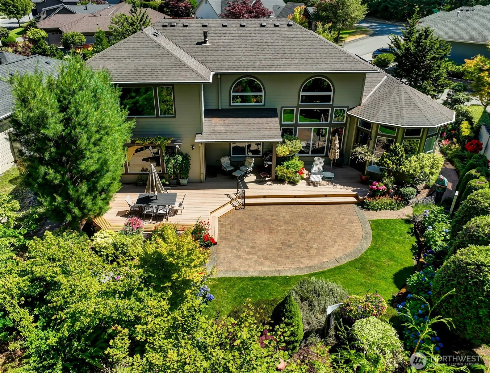 About 3,150 sq.ft., this Maryhill home has a fantastic mix of formal and informal spaces on a level arboretum-like lot backing to a greenbelt. Be greeted by vaulted ceilings, cathedral-like windows, and warm hardwood floors that run through the main floor. The 21-ft. ceilings and walls of windows continue into the family room, bringing inside the lush garden and evergreens beyond. The kitchen has an abundance of cabinets with pull-out shelves, a pantry wall, lots of prep space and an eating space. The huge main-floor primary bedroom has an equally big bathroom that includes two vanities, a steam shower, soaking tub and walk-around closet. The oversized second primary bedroom on the main floor is also en-suite with a walk-in closet. This room is plumbed and could be converted to a studio apt. The large office and laundry room complete the main floor. The upstairs third bedroom has a walk-in closet and adjacent full bath. A loft area on this floor has a built-in workspace. The large deck with built-in benches, only steps above a brick patio, is surrounded by exquisite gardens filled with beautiful perennials and specimen plantings, extensive outdoor lighting and a backyard drip irrigation system. It is a short, mostly level stroll to the Cascade Clubhouse, Trilogy’s social hub. Recently re-roofed. New furnace and air conditioner. Exterior painted 2024. Level 2 EV charger.