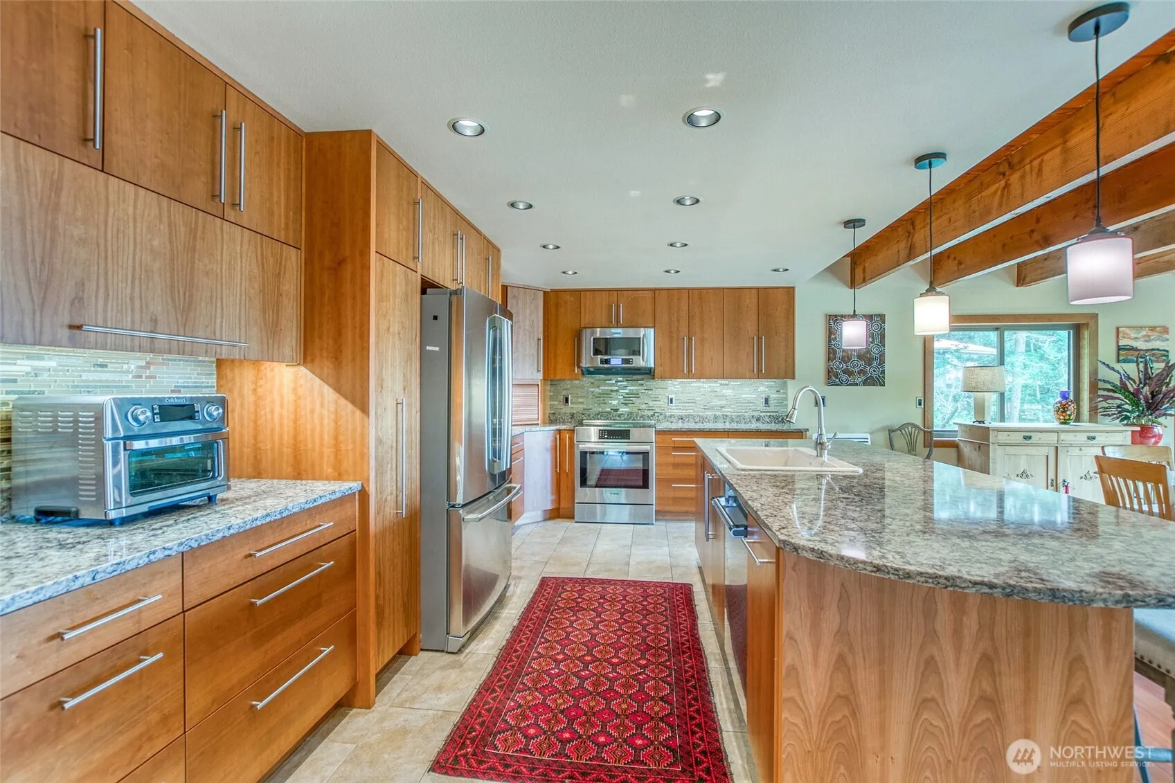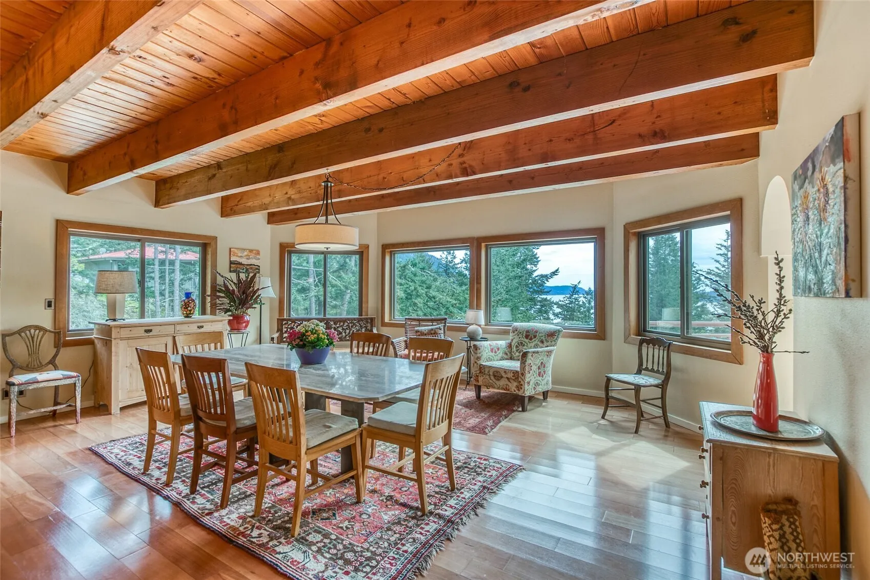 Nestled on a sun-drenched southern-facing hillside, this inviting Rosario view home offers a peaceful retreat overlooking Cascade Bay, with Blakely gracing the horizon. Set on .64 acres, the thoughtfully positioned residence blends comfort, warmth and natural beauty in a truly special setting. The two bedroom, two-bath home features a beautifully remodeled kitchen with new appliances, updated windows and efficient heating and cooling. Tall ceilings and rich wood floors create an airy cozy interior, while large windows invite in abundant natural light and tranquil water views. Roomy dining area, with added space for lounging and relaxing. Outdoors, the fully fenced terraced yard is both private and picturesque, anchored by a pair of mature maples that lend character and shade. The view deck is an ideal place to unwind, complete with a hot tub! Attached two-car garage & standby 22kw propane generator add convenience and peace of mind. Ideally located, the home is just a short stroll from Moran State Park’s Cascade Way loop trail, as well as picnic and beach areas. Enjoy easy access to Rosario’s marina and nearby waterfront, making this property a wonderful blend of serene seclusion and close proximity to outdoor recreation and coastal amenities.