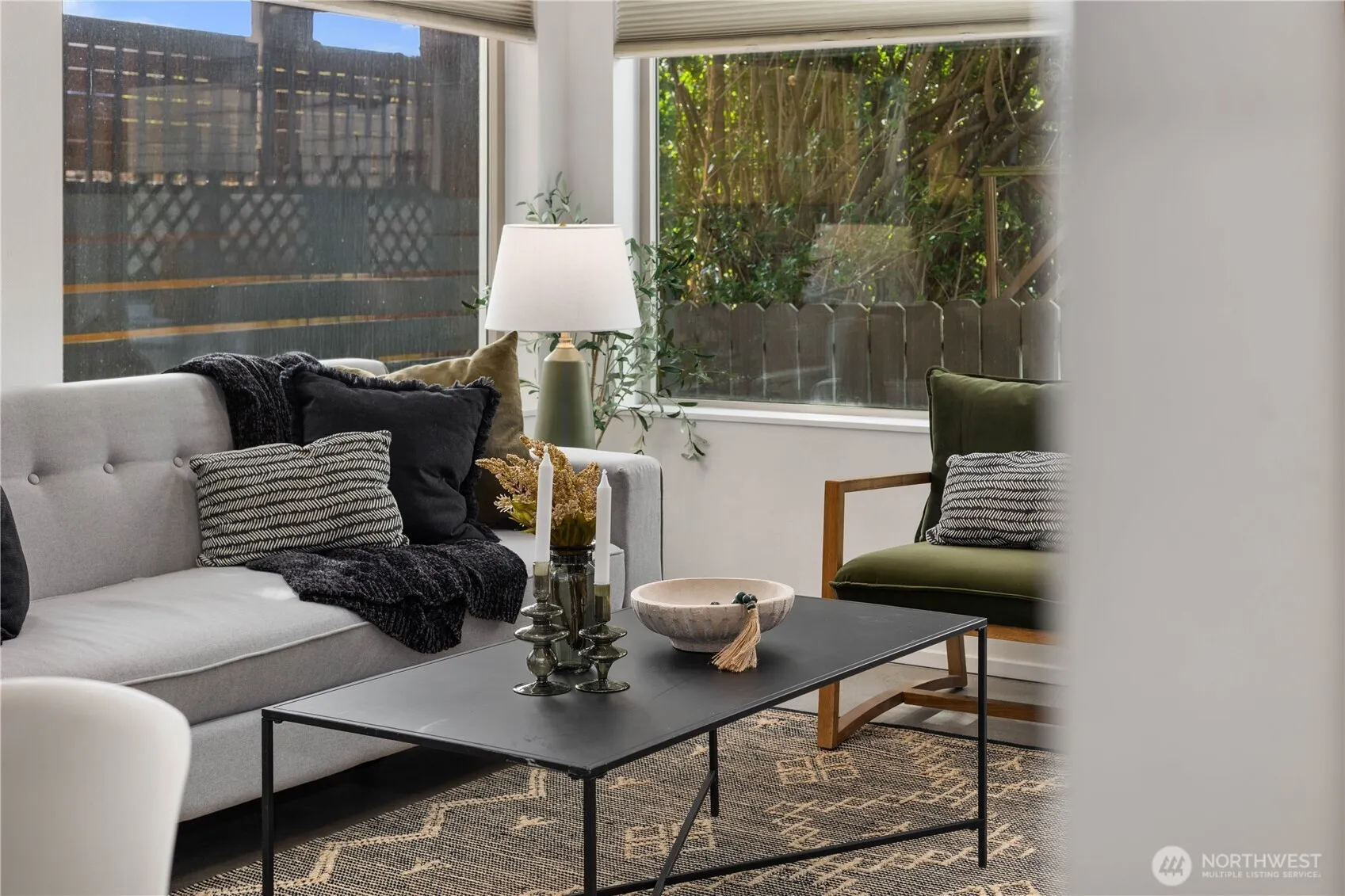 Tucked within a quiet courtyard, this thoughtfully designed 2-bedroom townhome offers a rare blend of peaceful privacy and exceptional urban access. Just moments from Seattle University and nearby restaurants, coffee shops, and boutiques, it delivers a true walkable city lifestyle with a Walk Score of 96. The home features a modern aesthetic with clean lines, open-concept living, and fresh interior/exterior paint for a move-in-ready finish. Expansive windows fill the space with natural light, creating a bright and welcoming atmosphere throughout. The flexible layout includes a bedroom and bathroom on each level, ideal for guests, roommates, or a dedicated home office. Comfort and efficiency are prioritized with radiant hydronic heating, HRV system, and upgraded insulation for year-round climate control and reduced energy use. The main level flows to a private patio off the kitchen, perfect for morning coffee or outdoor dining, while the rooftop deck offers city views and an inviting space for relaxing or entertaining. The primary suite provides a quiet retreat with a walk-in closet and well-appointed bath featuring a walk-in shower. Additional highlights include off-street parking, no HOA, and short-term rental potential, offering flexibility for both homeowners and investors. Pre-inspected for peace of mind, this low-maintenance home presents a rare opportunity in the heart of Seattle.