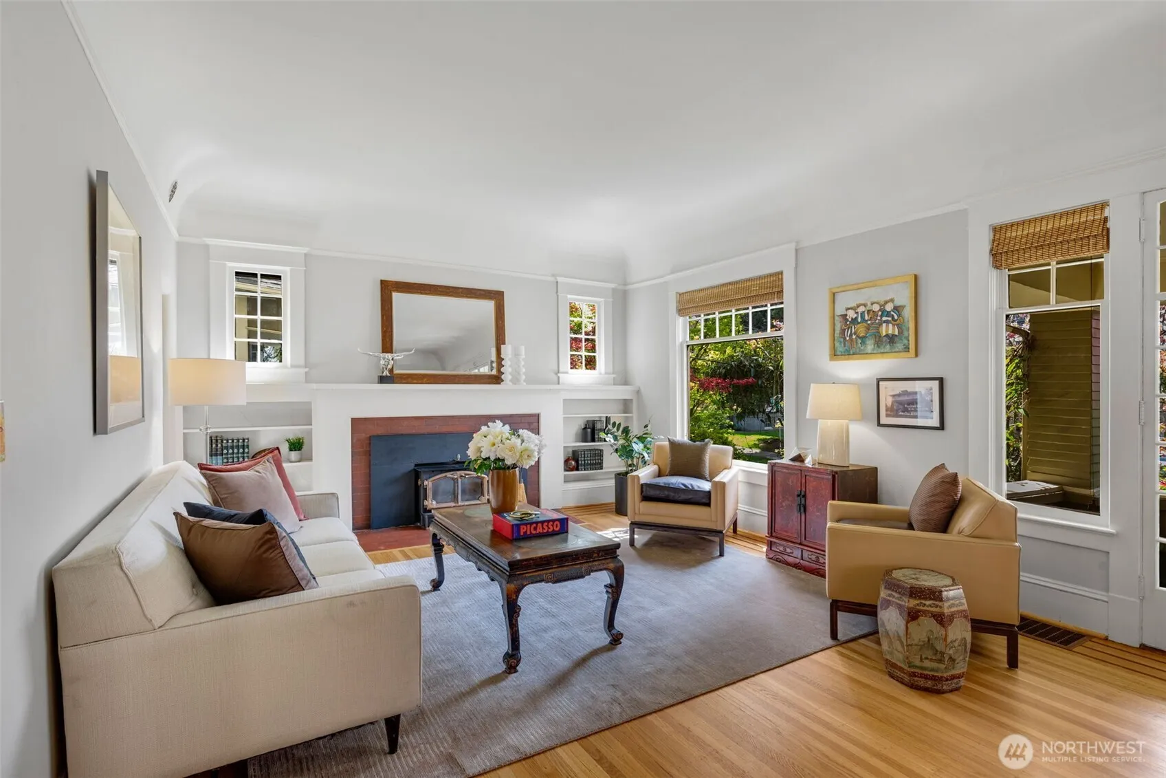 Perched proudly on a corner lot, this Grand Craftsman has been witness to Seattle’s story since 1907—now ready to be part of yours. Blending timeless character with thoughtful updates, this five bedroom home offers the best of both eras. Inside, classic architectural details shine—rich hardwood floors, charming window seats, cozy nooks & original craftsmanship that simply can’t be replicated. At the same time, modern living is embraced with an open-concept, updated kitchen & baths, & a lower level with media room, den, BR, & steam shower. A laundry & wine cellar completes this floor. French doors invite you outside to a garden-like setting, where a wraparound porch & decks create spaces for celebrating everyday life. Whether it’s morning coffee or evening dinners, this home lives as beautifully outdoors as it does within. Natural light fills the home with a central staircase that carries sunlight through its core. Skylights above & corner windows create an interplay of light & shadow, casting warm, shifting sunbeams across the interiors—an understated luxury during Seattle’s softer gray days. Two inviting fireplaces add to the home’s enduring charm. Located in a highly walkable neighborhood near boutique shops, grocery stores, restaurants & parks, the lifestyle here is as compelling as the home itself. The large garage—adds convenience to character. It’s more than a home. It’s a piece of Seattle’s past, respectfully updated for today & ready to be a part of your next chapter.