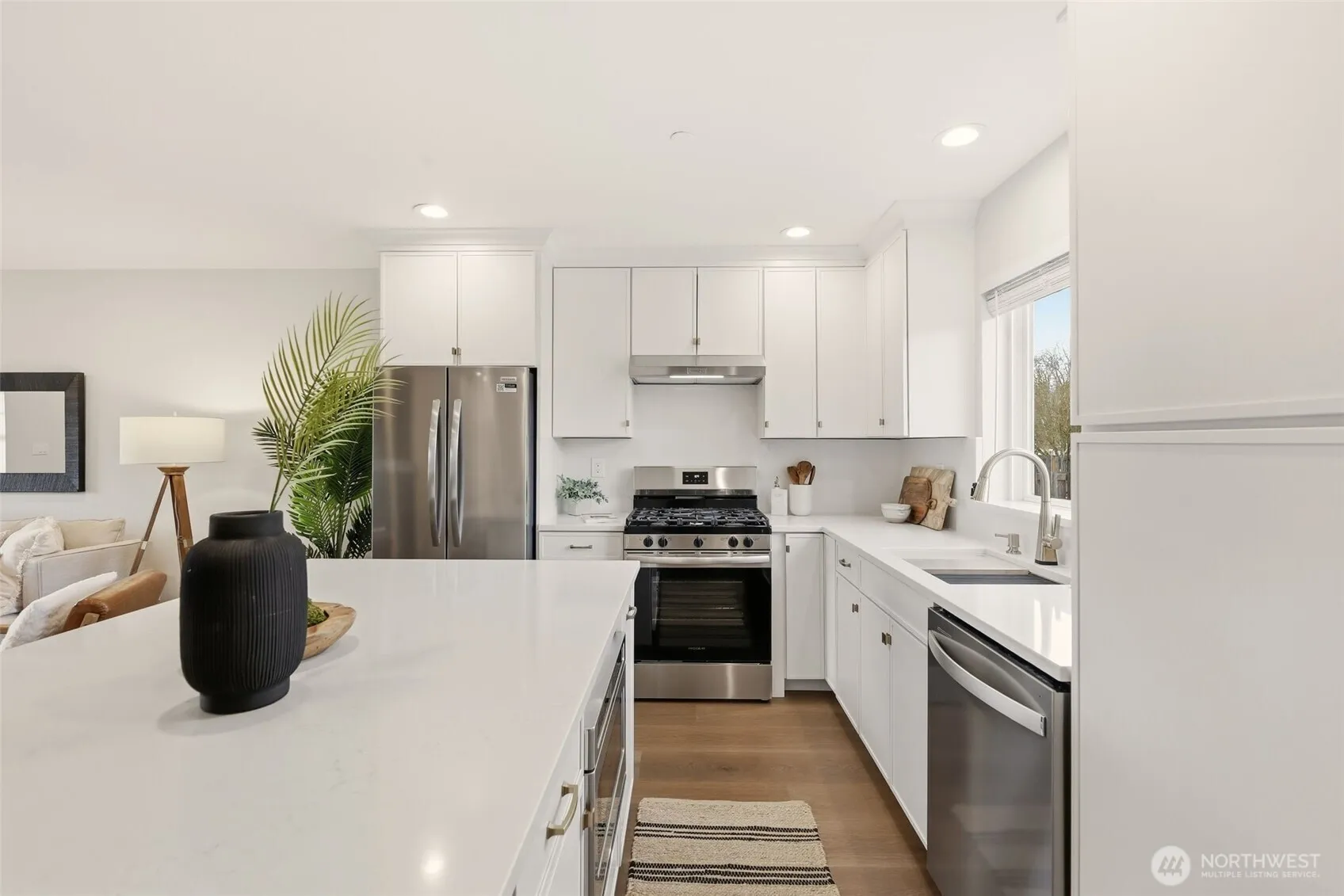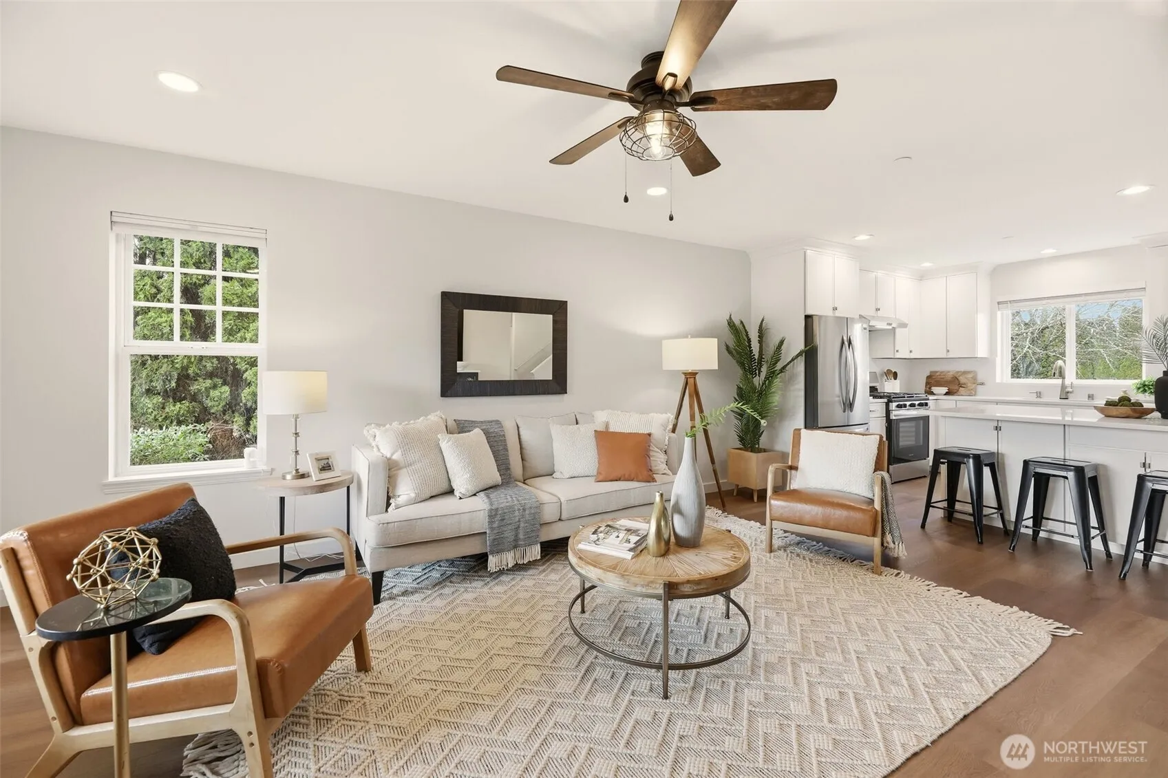 Must see in person to fully appreciate the level of renovation & setting. Exceptionally remodeled home that lives better than new—offering the privacy of a single-family home, a huge fenced yard, & no HOA or shared walls. Nearly every surface has been thoughtfully refreshed w/ quality rarely found in typical updates, including new flooring, cabinetry, doors, millwork, paint, appliances, fixtures, & extensive recessed LED lighting creating a bright, modern interior. The open kitchen features quartz countertops, a large gathering island, new appliances with warranties, & a spacious pantry. Upstairs, the primary suite offers valley views, a large closet, and a beautifully updated bath with custom tile shower. Fully remodeled additional bath with custom tile flooring and soaking tub. Step outside to a new covered outdoor living area and expansive deck overlooking the large, level fenced yard offering space, flexibility, and privacy rarely found this close to downtown. Garden beds, storage shed, and RV parking add versatility. Addl upgrades include new roof & skylights, new gutters, new furnace, A/C, new crawlspace vapor barrier, & custom window shades. Large garage with high ceilings and storage. No HOA. No monthly fees. No restrictions. Blocks to grocery, dining, and local shops with easy Eastside access to Microsoft, Amazon, Google, and SpaceX. Enjoy stunning private views across open sunflower fields to the surrounding mountains, an experience that truly sets this home apart.