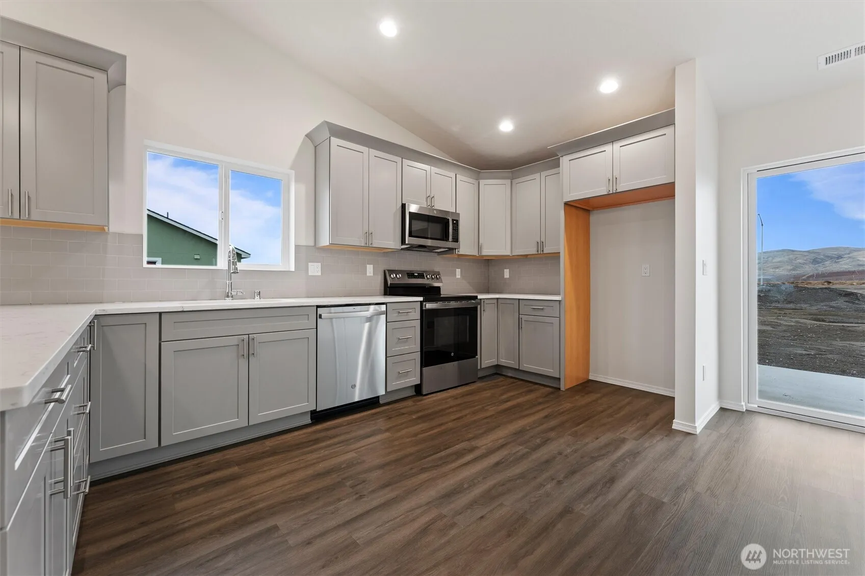 Presale: Personalize your own 3-bedroom, 2-bathroom home. Inside, you’ll be greeted by an open floor plan with vaulted ceilings, seamlessly connecting the dining, kitchen, and living areas. The kitchen is adorned with durable LVP flooring, & equipped with solid wood, soft-close cabinets providing ample storage, complimented by laminate countertops. Quality carpeting with 8 lb padding in the living spaces, ensuring comfort throughout. The exterior boasts two car attached garage, stucco exterior, front yard sod, & sprinklers included, enhancing the home’s curb appeal. Buyer able to choose a variety of selections countertops, flooring, paint and upgrades available!!!