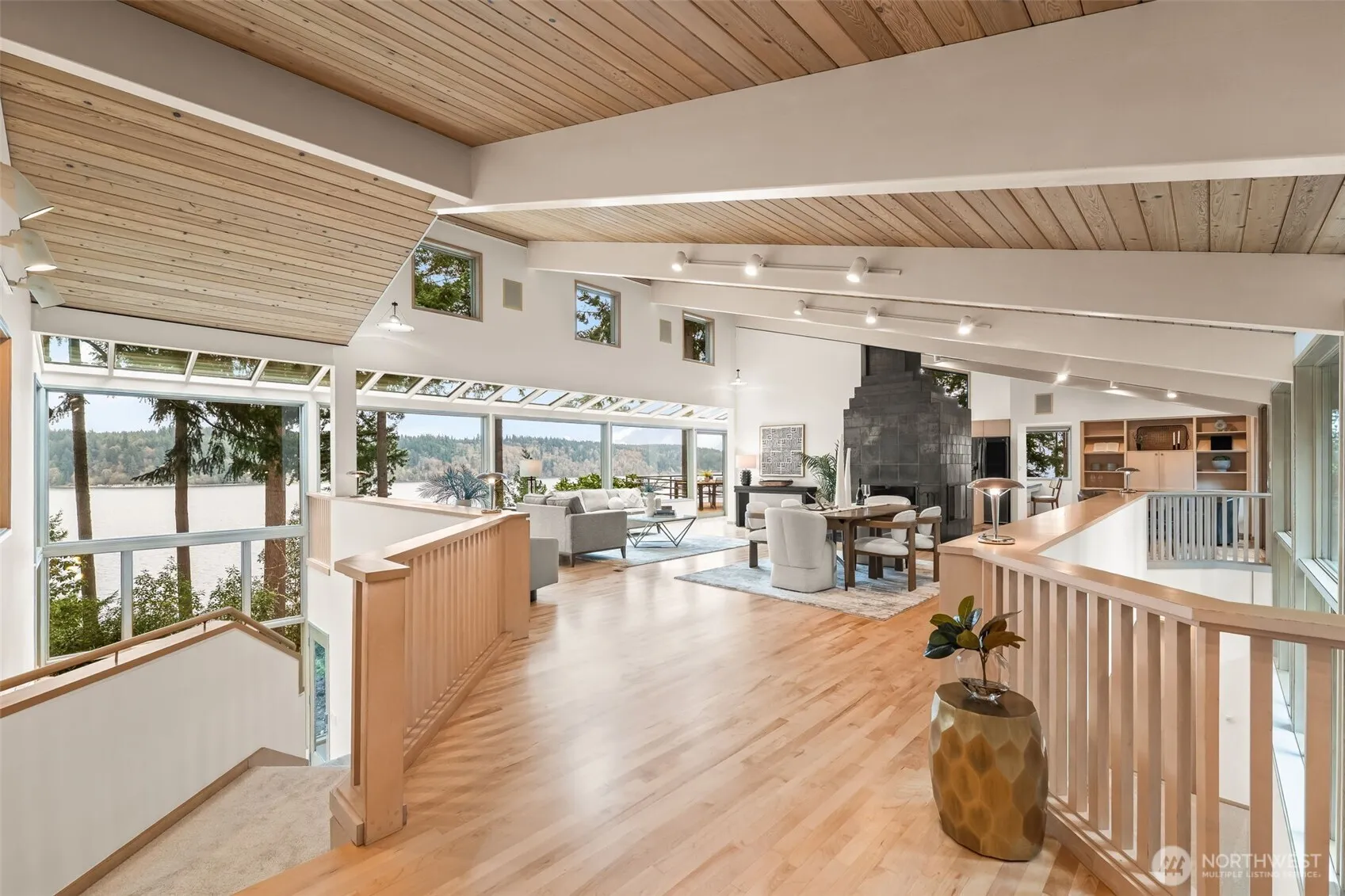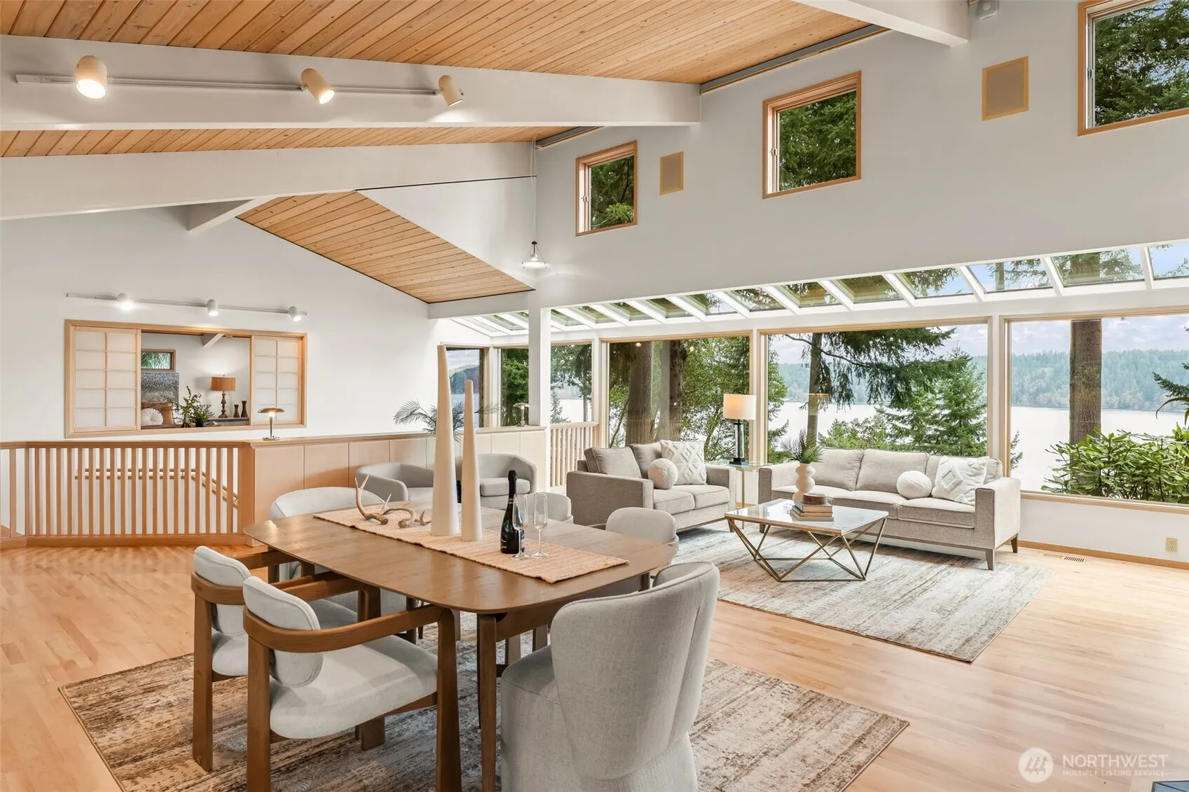 Experience a master class in Pacific Northwest Modernism. Designed by notable architect Alan Liddle, a protégé of the Frank Lloyd Wright lineage, this timeless masterpiece sits proudly on a secluded acre above the shores of Colvos Passage. The home, available for only the second time in its history, is a profound study in light, volume, and organic materials. The architecture intentionally dissolves the boundaries between the interior and the sweeping views of Puget Sound and its evergreen landscape. Soaring ceilings and signature walls of glass capture the sunrise over Vashon Island, while newly refinished maple floors provide a warm, grounded glow and intimacy to the open spaces. The home is a work of art at every angle—including Liddle’s signature etched into the surround of the 3 sided wood fireplace. The 4,250 SF floor plan offers the highly sought-after main-floor primary suite, blending effortless luxury with functional design. Each room on the lower level has its own special character and expansive views. With 100 feet of high bank waterfront, this secluded retreat offers a level of peace rarely found just minutes from downtown Gig Harbor. Far more than just a special home you will be proud to call your own, it is a rare opportunity to serve as the next steward of a Pacific Northwest legacy.
