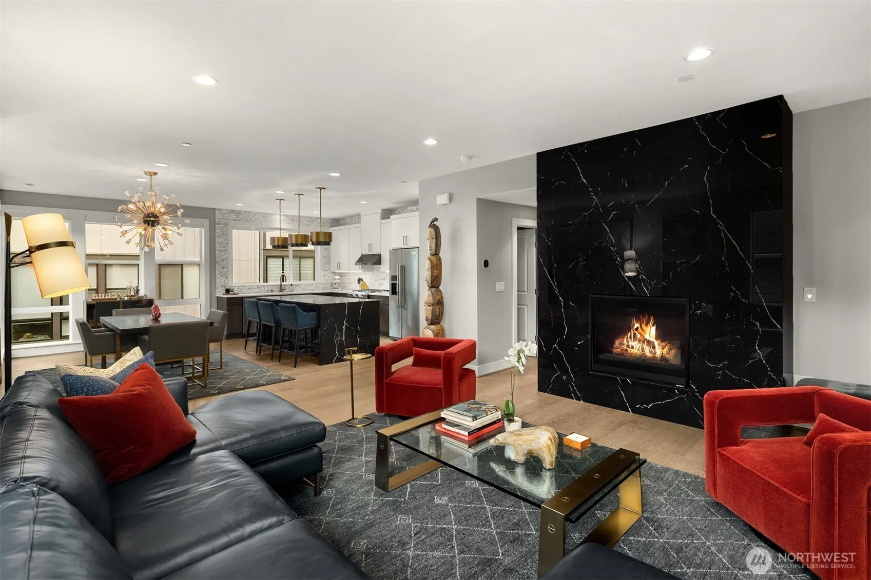 SELLER-PROVIDED 4.99% FINANCING — A ~$60,000 PRICE-FORWARD ADVANTAGE. A fully funded interest rate buy-down to approximately 4.99% [with 20% down] is exclusively available with this home, representing an investment of roughly $60,000 by the seller to materially reduce a buyer’s monthly payment and long-term interest expense. This lowers the true cost of ownership without compromising the home’s value or design. Quietly positioned within a private enclave, the residence is defined by clean architecture, natural light, and thoughtful material selection. Engineered hardwood flooring runs throughout — no carpet — paired with expansive windows that frame green outlooks and draw natural light deep inside. A slab-stone fireplace wall anchors the living area. The kitchen features a waterfall quartz island, full-height tile, and integrated lighting. Custom closets, premium fixtures, remote window coverings, dimmers, and a fully finished, two-car garage support effortless living. Set minutes from beaches, parks, trails, cafés, and boutique shopping. A refined home paired with a clear, quantifiable financial advantage designed to create a favorable cost of ownership.