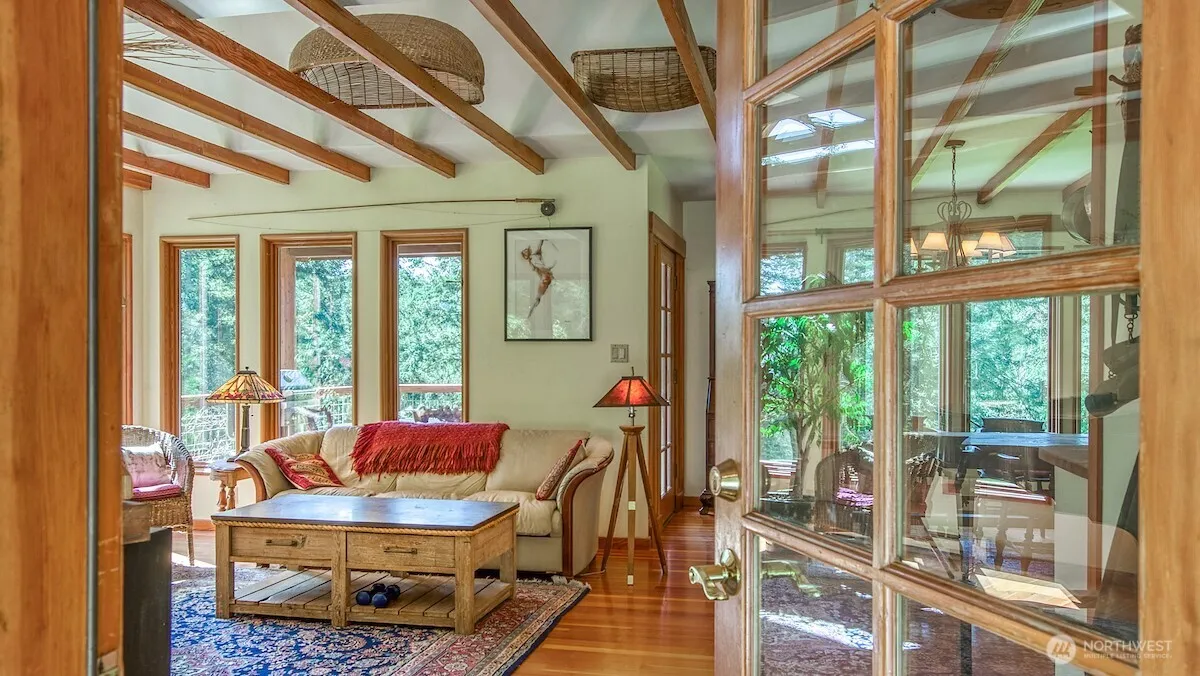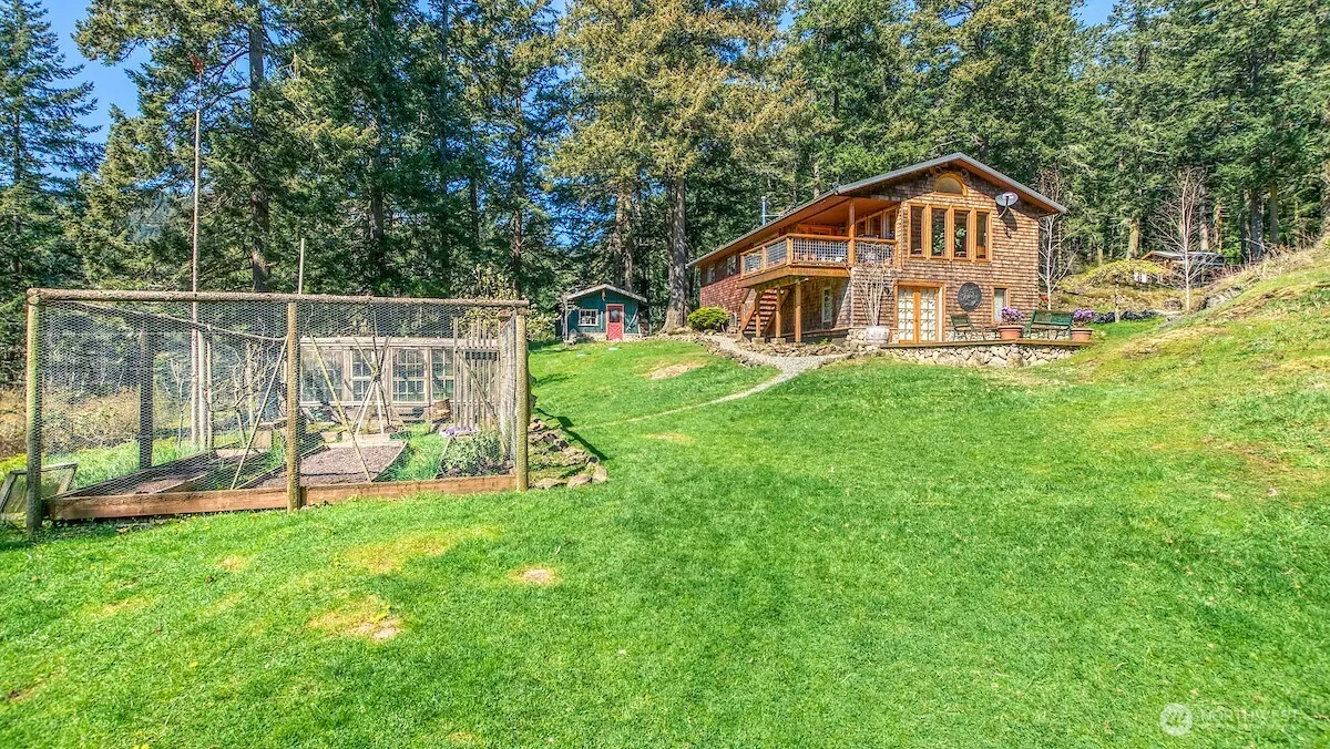 Discover an idyllic small farm on 2.1 acres of diverse, sun-dappled terrain in Shorewood on the east side of Orcas Island. This property features mature forest, mossy outcroppings, a grazing pasture, and a fenced kitchen garden. The lifestyle is enhanced by deeded beach access on Doe Bay where there are panoramic Mt. Baker views and a private mooring buoy—all just minutes from Moran State Park, Olga Village and Doe Bay Resort. The 1,944 sf, two-level residence from 1981 has been masterfully updated, featuring new cedar shake siding, new decks, and a welcoming slate entry. Inside, enjoy milled fir floors, upgraded tile work, a raised living room ceiling, new appliances, and bright new windows. The outbuildings include a studio/office with power and wood floors, a separate garage/workshop, barn, and a chicken coop. Served by Doe Bay Water and a private septic system, this is the ultimate Orcas retreat.