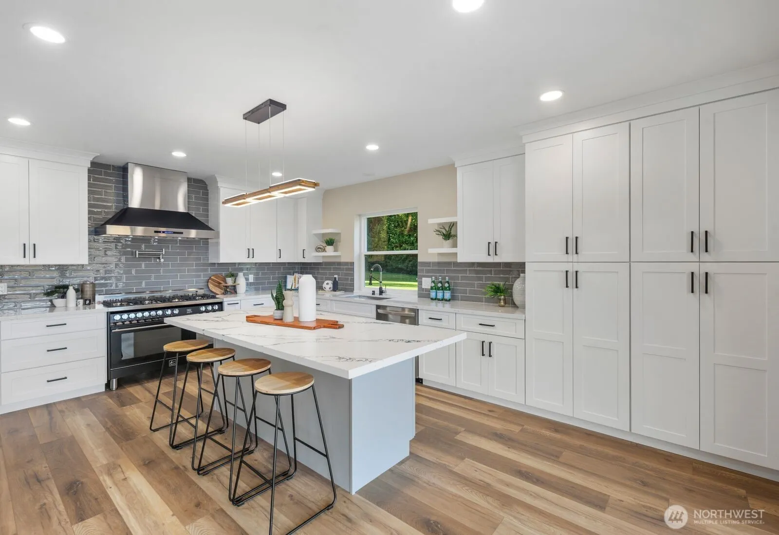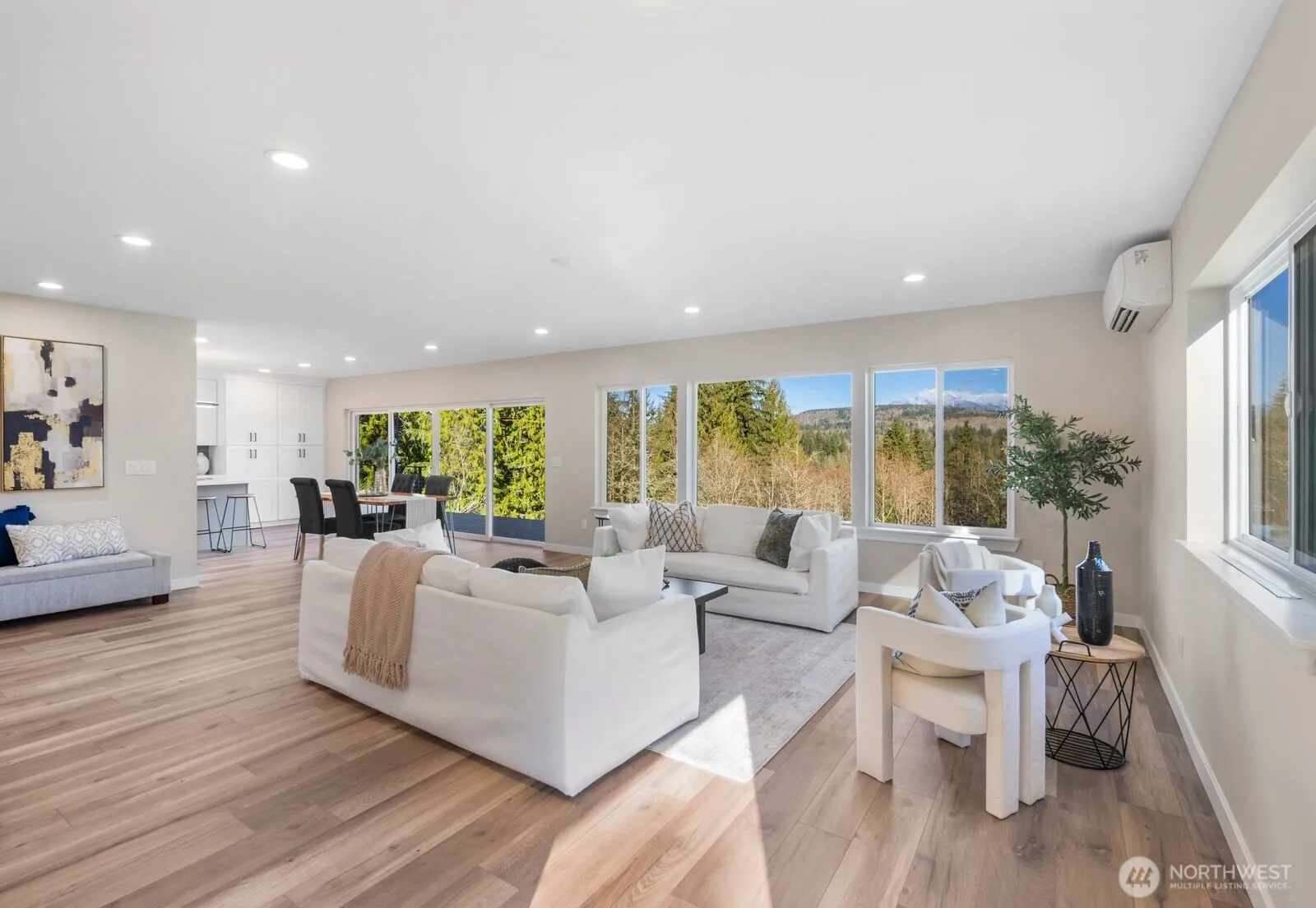 Fully remodeled 4,200 sq ft estate on 5 private acres with sweeping territorial views. This 3-bedroom, 3-bath home offers refined luxury and exceptional versatility. The chef’s kitchen features a professional-grade gas range with double ovens, quartz countertops, custom cabinetry, and designer tile backsplash. The spa-inspired primary suite showcases a freestanding soaking tub positioned to capture the views and a custom walk-in shower with frameless glass and rainfall feature. Additional bathrooms include beautifully appointed walk-in showers and heated floors. Vaulted ceilings and expansive windows fill the home with natural light. A spacious bonus/rec room offers ideal space for media or recreation, while two main-level flex rooms and a loft-style nook provide options for office, gym, or guest use. Oversized 3-car garage with extra depth accommodates up to 6 vehicles or shop potential, with 220V capability. Whole home wired for 50-amp generator hookup. Dual-zone mini split system and LED lighting throughout. Private, peaceful, and move-in ready — just minutes from town.