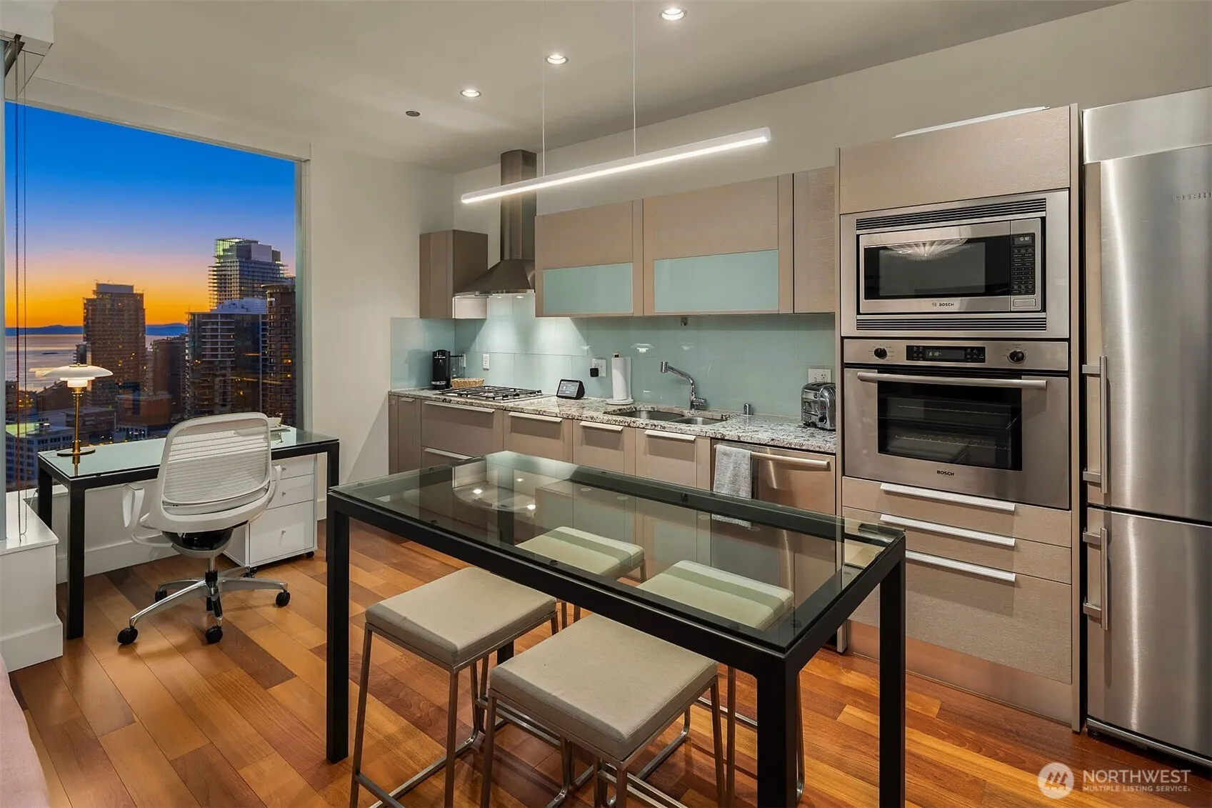 Experience elevated city living at Olive 8, where modern luxury and unbeatable convenience converge in the vibrant heart of downtown Seattle. This beautifully appointed 1-bedroom, 1-bath residence showcases sweeping west-facing views of the Puget Sound, glowing sunsets, and the dynamic city skyline—creating a stunning backdrop from day to night. Thoughtfully designed with comfort and style in mind, the home includes a highly sought-after parking space and dedicated storage unit. Residents enjoy access to an exceptional suite of amenities, including 24/7 concierge service, a state-of-the-art fitness center, yoga studio, game room, pet retreat, and an elegant party lounge—perfect for entertaining. For those seeking a resort-style experience, optional hotel membership provides access to the Hyatt’s luxurious pool, hot tub, and sauna. Ideally located just steps from Pacific Place, Amazon, Whole Foods, and world-class dining destinations like Din Tai Fung, this home offers the ultimate in walkable urban living. Whether you’re enjoying a quiet evening with sunset views or stepping out to explore the best of Seattle, Olive 8 delivers a lifestyle of sophistication, ease, and connection.