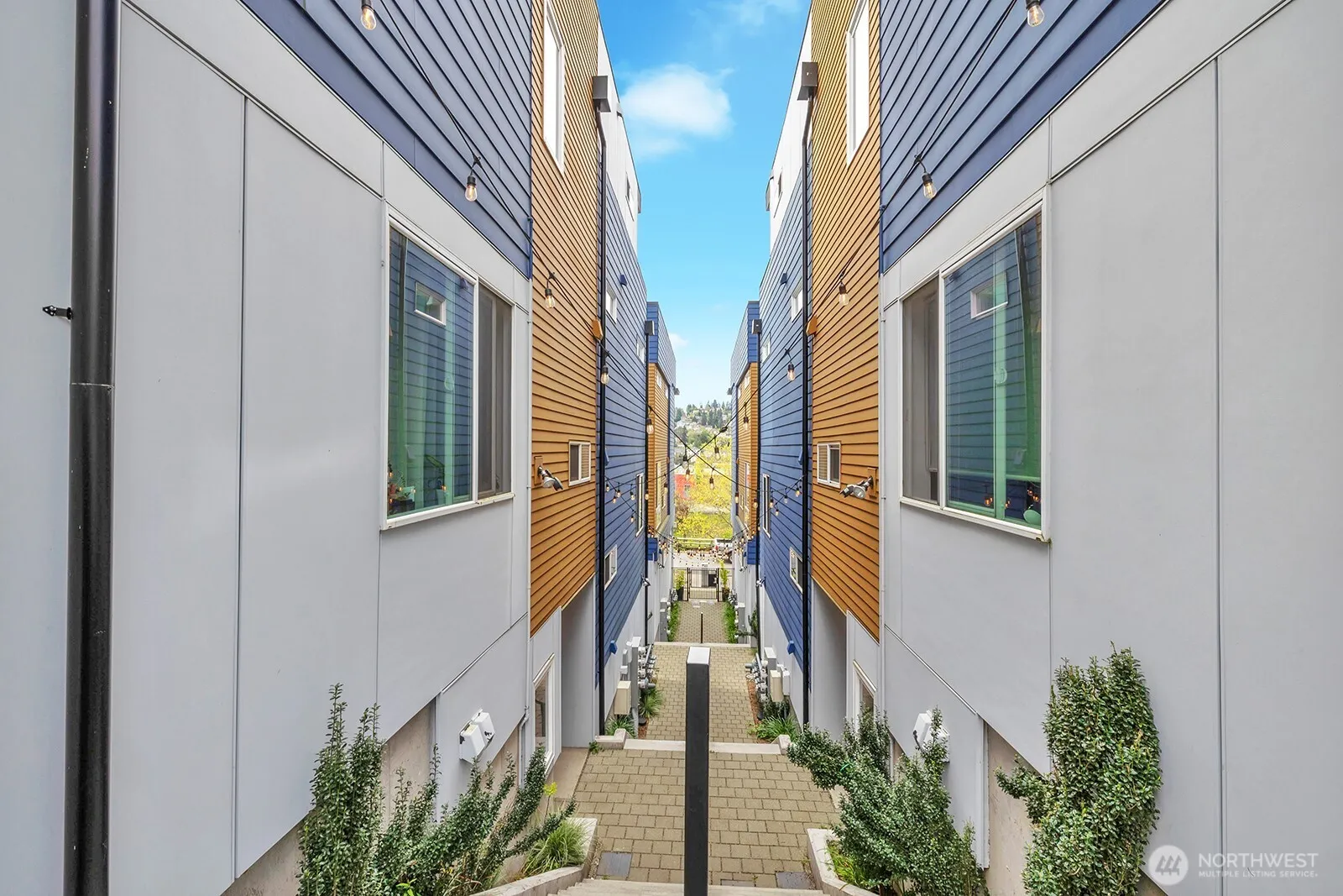 Experience refined, urban living in this light-filled 2-bedroom+LOFT, 2.25-bath END-UNIT townhome located in a gated community in Queen Anne. This home showcases an open-concept design enhanced by abundant natural light, dual primary-style bedrooms, and a flexible loft space with powder room. The private rooftop deck offers a serene outdoor retreat ideal for entertaining or enjoying beautiful PNW sunsets. Modern features include gorgeous hardwood floors, sleek kitchen cabinets with stainless steel appliances, full-size washer/dryer, tankless water heater and ductless mini-split for heating and cooling. Complete with one assigned parking spot and convenient access to the RapidRide D Line, this home seamlessly blends style, comfort, and connectivity. Walking distance to cafes, shopping and restaurants!