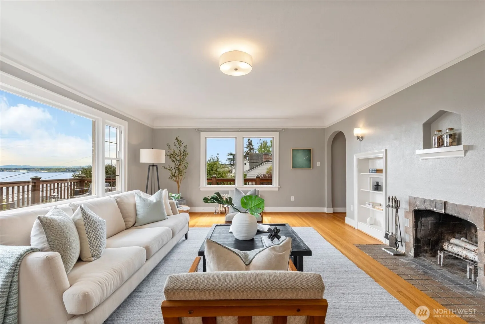 Exceptional location in a coveted private setting in serene Seward Park! Nestled on a 14700SF lot, this 1928 farmhouse style home wows with its’ sparkling vistas of Lake Washington and majestic Mt Rainier. Freshly finished hard wood floors throughout and light filled interiors create a wonderful sense of airiness. Day rooms that overlook the lake and mountain and connect seamlessly with the view deck. Lots of the old world charm features we love, with the efficiency of solar and comfort of AC (on upper floor). The unfinished basement with impressive ceiling height is ready for its’ next chapter. Enjoy an abundance of outdoor spaces — the expansive lawn, garden spaces + raised beds, mature landscaping and intimate spaces to unwind. Entertain a crowd on the 520SF view deck , or soak in your private hot tub as you gaze at the lake and mountain beyond. Detached 525 SF two- car garage and fabulous 281 SF studio space which opens to an expansive mahogany deck. Additional driveway parking too. Steps to local lakefront beach. Beautifully livable with additional opportunity to enhance and personalize- this home will stir your imagination!