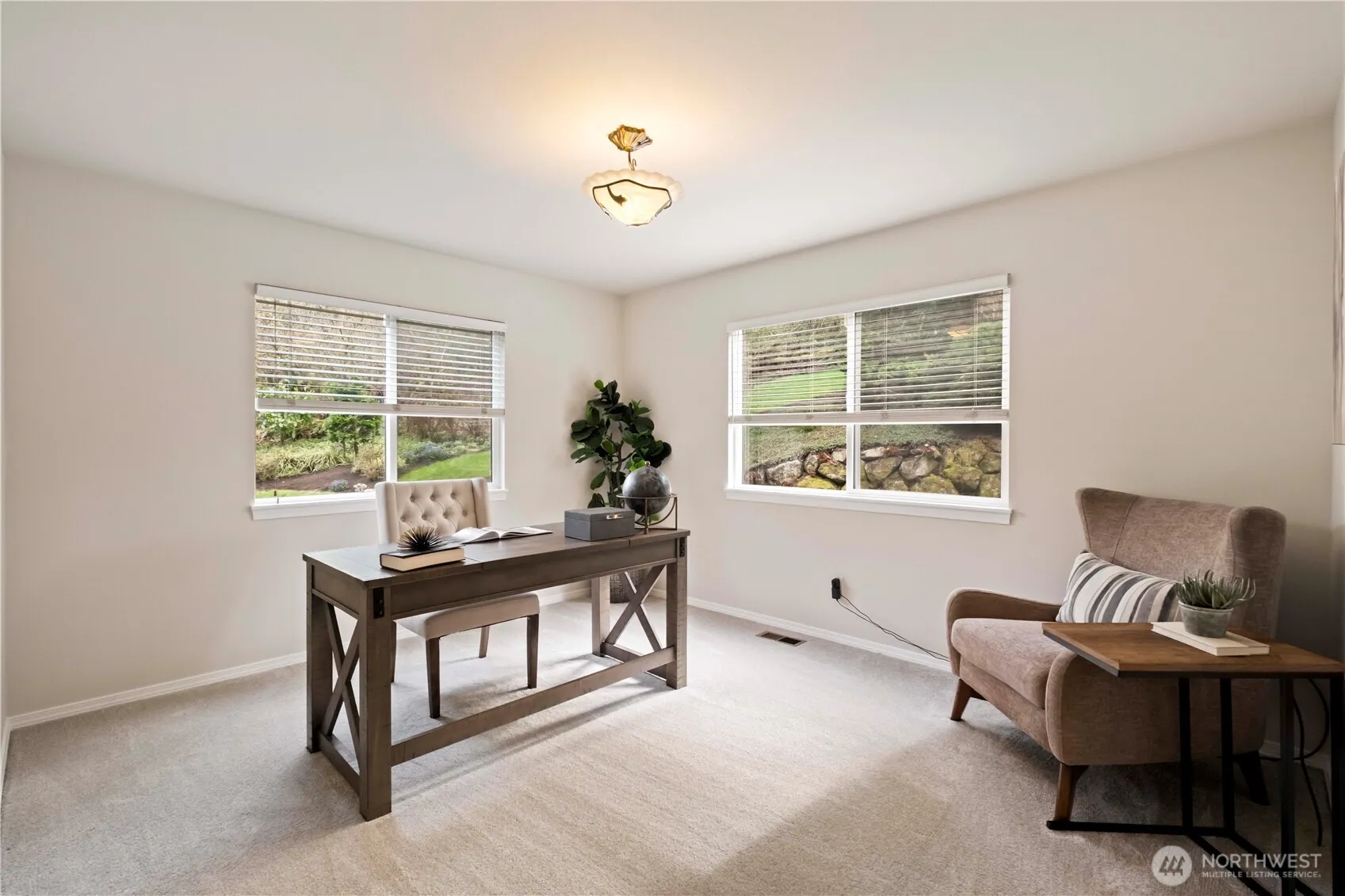 Nestled on just under an acre in the highly sought-after Daniels Ranch community, this gorgeous home offers a rare blend of privacy, space, and convenience just minutes from everyday amenities. Inside, gleaming hardwood floors, elegant wainscoting, and expansive windows create a warm, light-filled ambiance. The formal living and dining rooms are perfect for entertaining, while the chef’s kitchen features a large island with gas cooktop, abundant storage, and seamless flow to the informal dining area and patio. The inviting family room with gas fireplace, main-level office, and thoughtful layout add to the home’s functionality. Upstairs, the spacious primary suite boasts a beautifully remodeled bath with heated floors and designer finishes, along with two additional bedrooms and a large bonus room. An additional 825 sq ft Secondary Suite with separate entry offers so many possibilities–extended living space, private office, teaching or workout space, art studio, etc, etc. Enjoy outdoor living with a large patio, firepit, and beautifully landscaped grounds. 3-car garage, A/C, and prime location near dining, shopping, top-rated schools, minutes from Redmond Town Center and the Cascade Mountains complete the package.