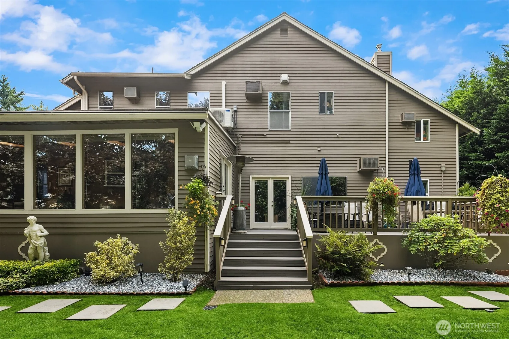 Tucked away at the end of a quiet cul-de-sac, this one-of-a-kind custom residence offers over 4,000 sq ft of thoughtfully designed living space and luxury amenities. From the moment you enter, soaring vaulted ceilings, rich hardwood floors, and expansive living areas create an elegant yet inviting atmosphere ideal for both everyday living and entertaining. At the heart of the home is a beautifully appointed kitchen with stone countertops and an inviting dining space that flows seamlessly into the main living area. Just beyond, the home reveals its most unforgettable feature — a stunning indoor spa sunroom complete with a built-in hot tub and floor-to-ceiling windows overlooking the private, tree-lined backyard. The lower level is designed for entertainment , featuring a game room and lounge perfect for gatherings or movie nights. A main-floor guest bedroom and bath provide space for visitors or home office. The primary suite offers a cozy sitting area, fireplace, spa-inspired bathroom with heated floors, and an impressive custom walk-in closet designed for exceptional storage. Additional highlights include multiple gas fireplaces, central air conditioning, smart home features, and beautifully landscaped grounds with sprinkler and drip systems. Surrounded by mature trees and located near parks, shopping, and major commuter routes, this exceptional home delivers space, privacy, and custom luxury living in one of Federal Way’s most peaceful settings.