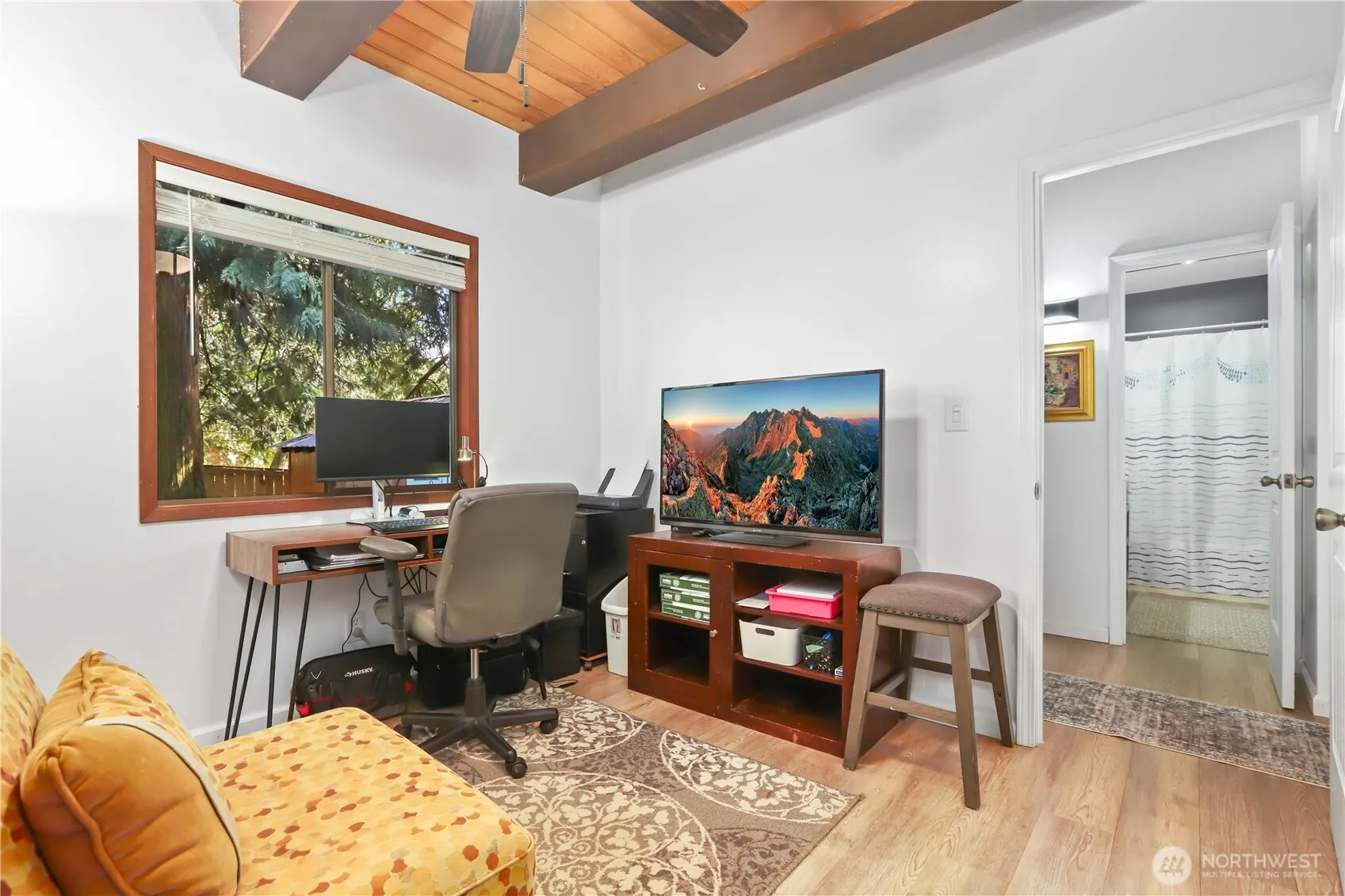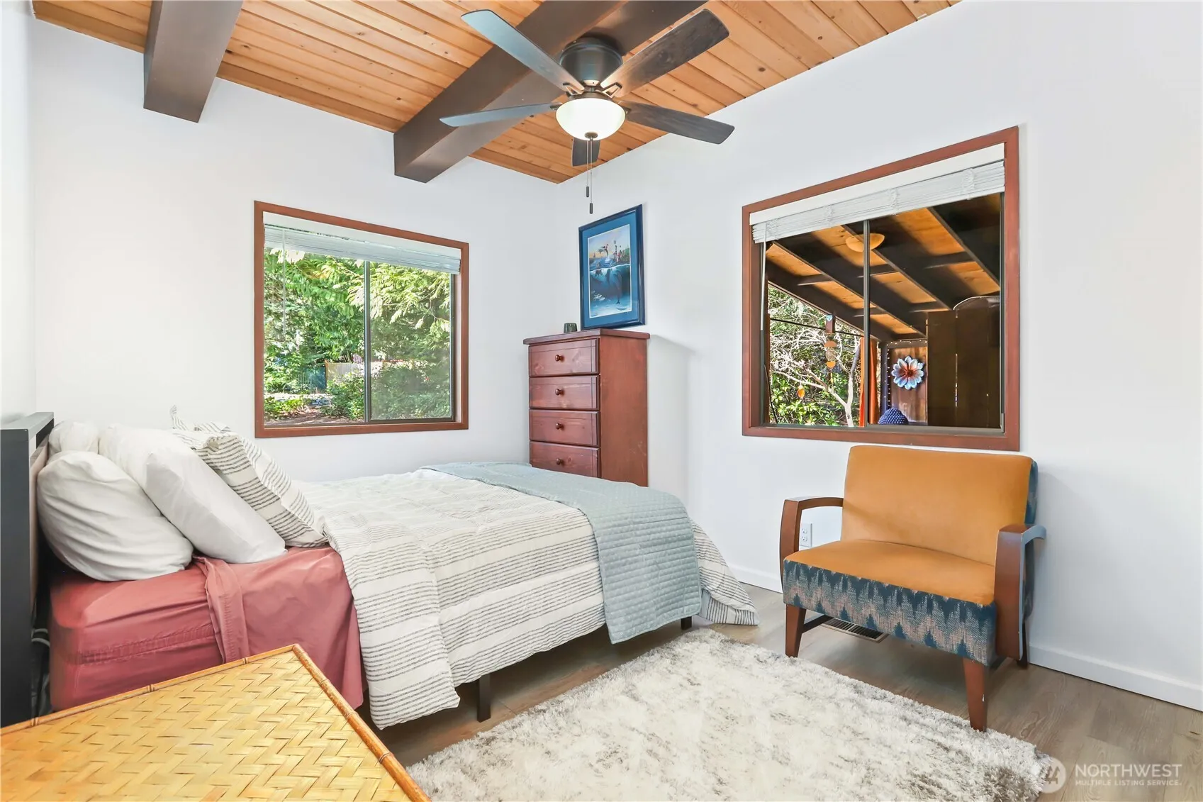 This majestic property boasts forty conifers, providing ample privacy and a serene atmosphere, just two minutes from Puget Sound. Outdoor living is a true highlight, with three separate covered spaces perfect for relaxing or entertaining. The main living room features soaring cedar-lined ceilings and expansive windows that flood the space with natural light, anchored by a dramatic floor-to-ceiling brick gas fireplace. A striking steel spiral staircase leads to a spacious loft and private primary bedroom, complete with a half bath. The main living area includes two bedrooms and a full bathroom. Step outside onto a massive deck to enjoy breakfast, then discover an Asian-inspired hangout/bar and fire table sitting area. The attached carport has been transformed into a beautiful outdoor living space, complete with a jacuzzi. Relax by the fire table, open the curtains, and take in the view of majestic cedar trees. Additional features include a workshop, storage cottage, and garden shed. Upgrades include a renovated kitchen, all new doors, a roof replaced in 2022, a new hot water heater, and updated flooring throughout. Enjoy access to Shelter Bay’s exceptional amenities, including a swimming pool, tennis courts, marina, golf course, clubhouse, private beaches, and BBQ area. Please note: this property is part of the Shelter Bay master leasehold agreement and is not fee simple land ownership.