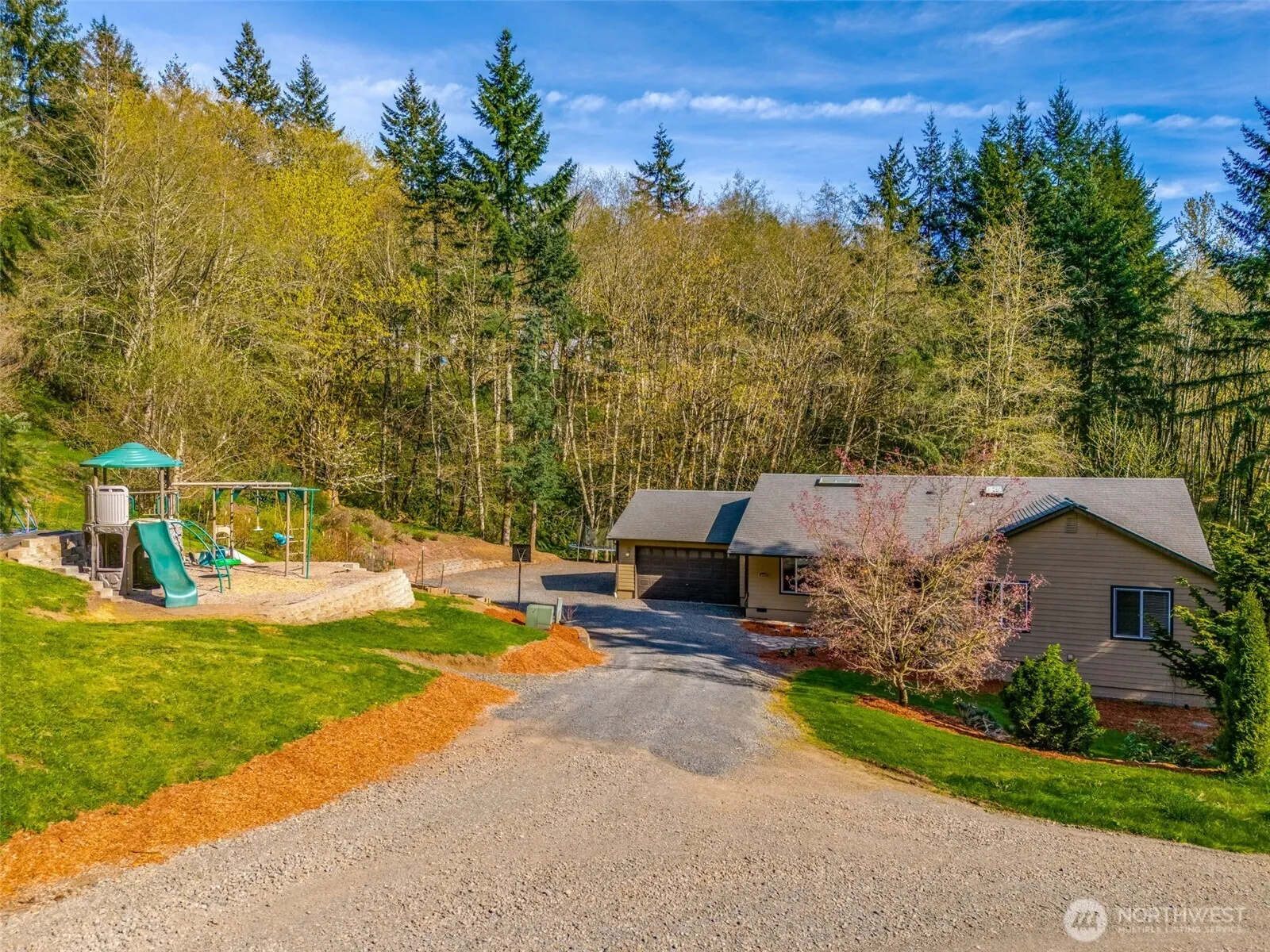 Close enough to feel connected, far enough to feel like a getaway—This 3,027 sq ft, 4 bedroom++, 3 bath home delivers that “country oasis” lifestyle while staying just a few miles from the freeway for an easy commute. Being near a neighbor adds peace of mind and a sense of connection, while you still enjoy space and the creek to breathe, explore, and unwind. Inside, the entry offers extra storage and opens to a bright living room with soaring vaulted ceilings and skylights. The open-concept design keeps everyone together, with a kitchen built for real life—stainless steel appliances, new fridge, a large eating island, pantry, window over the sink, and generous counter space. A mudroom off the garage and an oversized, centrally located laundry room make everyday living simple. The primary suite is spacious with a large walk-in closet and a standout bath with room to add your dream extras. The guest bath is thoughtfully designed so two people can use it at once. With three bedrooms on the main level plus a finished daylight basement featuring multiple rooms, a full bath, family room, and play area, you can shape the space for guests, hobbies, multi-gen living, or future ADU-style potential. Ready to move in with new paint throughout the inside! New heat pump & hot water tank! Swim this summer in your OWN pool, set up an amazing play area or start your garden. Bring your toys, your plans, and make this your oasis.