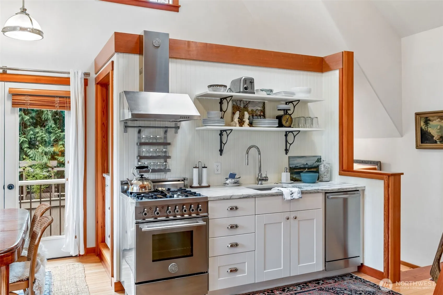 A jewel box! This sweet cottage in the Treehouse Community is situated at the end of a dead end street for ultimate quiet and privacy. Desirable location close to Fort Worden. This home has been beautifully remodeled, with bedroom and office/den on main floor and new 3/4 bath. Upstairs has new galley kitchen and coffee station, with Vermont Danby marble countertops and high-end appliances; Bosch dishwasher, Bertazzoni gas range, Miele refrigerator. The dining area is set near French doors that open to two balconies, cozy living room with car decking ceiling, loft bedroom or perhaps an office. Full bath upstairs as well. Wood floors throughout common spaces, vaulted ceiling. This is the a perfect getaway spot whether you are here part time or a full time residence. This warm and efficient home is a place of refuge. Close to trails and guest parking nearby. Lovingly maintained, no work to be done, this charmer is move in ready.