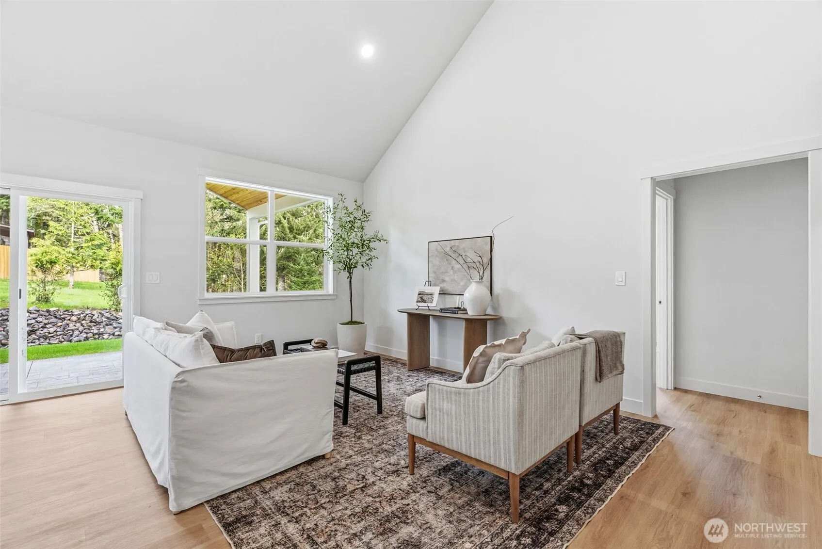 Beautifully designed modern farmhouse…new construction on 2 acres, offering the perfect blend of contemporary style and peaceful rural living. This four-bedroom, three-bath home is filled with natural light, highlighted by a vaulted open-concept living space and expansive windows. The deluxe kitchen features ample cabinetry, quartz countertops, stainless steel appliances with warranties, and a fully functional walk-in pantry complete with additional counter space and outlets. The great room seamlessly opens to a covered patio—perfect for outdoor dining and entertaining. The luxurious main-level primary suite includes a private bath with double vanities, a walk-in closet, and convenient access to the laundry room. An additional bedroom with a walk-in closet is also located on the main level. Upstairs, you’ll find two more spacious bedrooms and a vaulted bonus room, offering flexibility for a variety of needs. Outside, enjoy scenic views and plenty of space to roam on the 2-acre property. The large turnaround driveway provides ample parking, including room for an RV. Plus there is room for a shop. Located just minutes from the charming downtown area of Castle Rock, with local dining, shops and amenities nearby, this home offers the perfect balance of small-town living and modern convenience. Schedule your private tour today—this exceptional property has everything you’re looking for.
