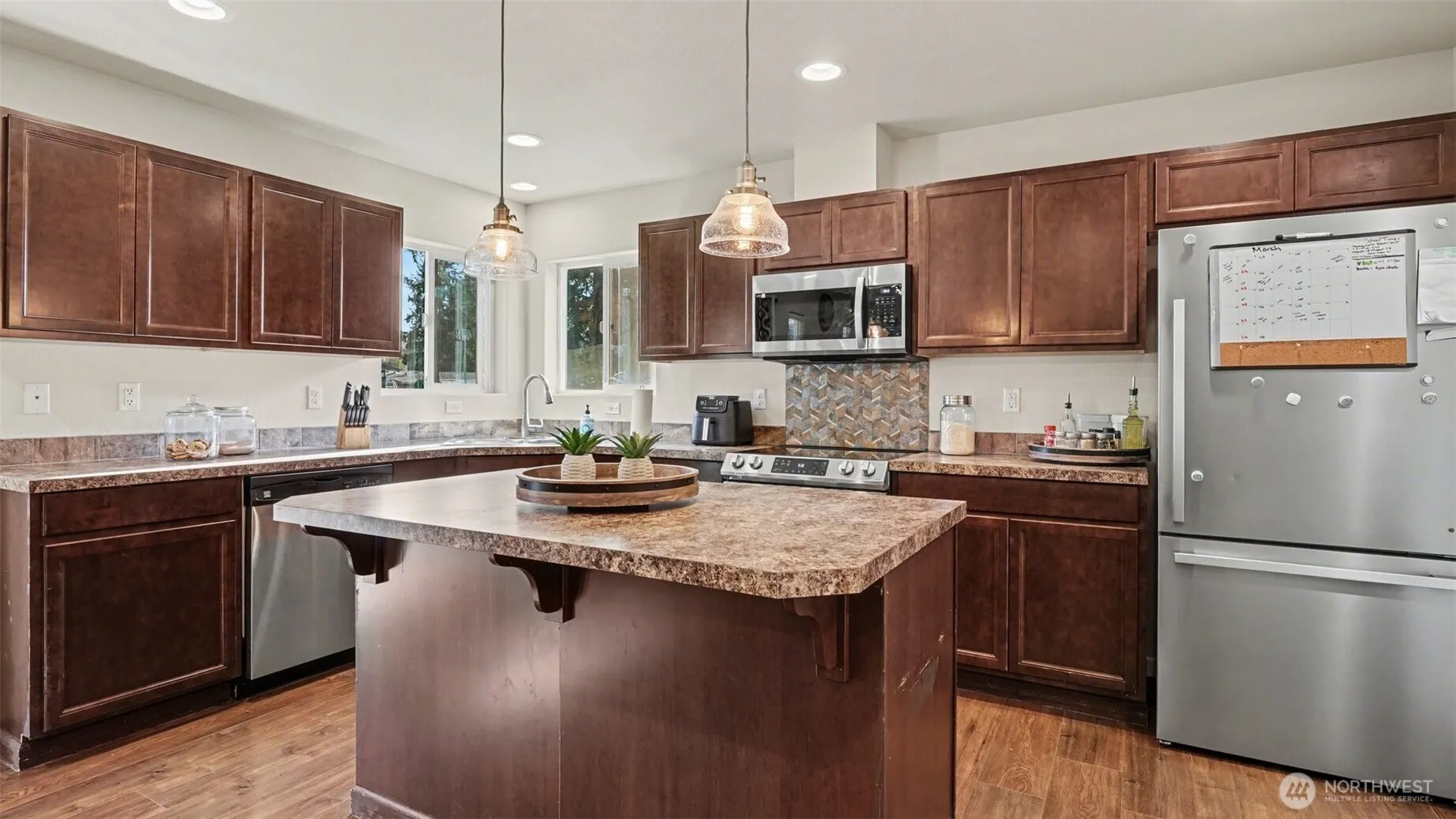 Move-In Ready Modern 2-Story. The perfect blend of style and utility in this 3-bed, 2.5-bath gem. Featuring a bright Great Room layout, the island kitchen shines with stainless appliances and a sleek tile backsplash, overlooking a spacious family room with durable laminate flooring. Enjoy year-round comfort with an efficient ductless mini-split system in every room. Primary Suite features a walk-in closet and a brand-new walk-in shower. Fully fenced yard with a covered patio, firepit area, and storage shed. Unbeatable Parking Spacious 2-car garage plus a massive driveway for 3+ cars or RV/Boat parking. Whether you’re entertaining by the fire or storing your hobby fleet, this home is built for your lifestyle. Move-in ready and a must-see! Bring Your Toys!