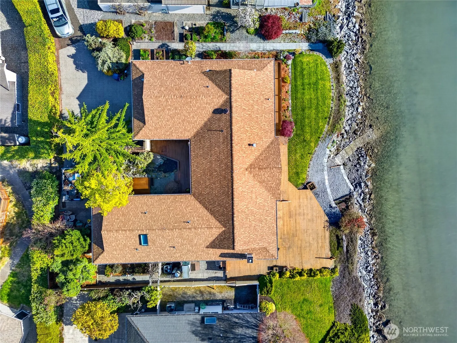 Experience true waterfront living in this beautifully positioned Shelter Bay home with direct access to the water and sweeping channel views. Step outside to your expansive deck and shoreline—perfect for kayaking, paddleboarding, or enjoying the calm scenery right from your backyard. Inside, large picture windows frame the water from the main living spaces, filling the home with natural light. The open layout flows effortlessly, highlighted by warm hardwood floors, a wood-accent ceiling, and a double-sided fireplace that creates a cozy focal point between the living and dining areas. The kitchen offers ample storage and workspace while staying connected to the main living areas and water views—ideal for everyday living or entertaining. Multiple sliding doors lead to the deck, creating seamless indoor-outdoor living. Enjoy sunset evenings on the spacious courtyard-style deck, featuring a tranquil pond and landscaped stream that enhance the peaceful setting. Located in a quiet waterfront community, this home offers a blend of tranquility, lifestyle, and convenience—minutes from the charming town of La Conner, yet feeling like a private retreat. For boating enthusiasts, you’re approximately 200 feet from the Shelter Bay marina and moorage—an exceptional opportunity for easy water access. Shelter Bay also offers favorable financing options for leased land properties. This is your chance to own a slice of waterfront living in the Pacific Northwest..**Leased Land**