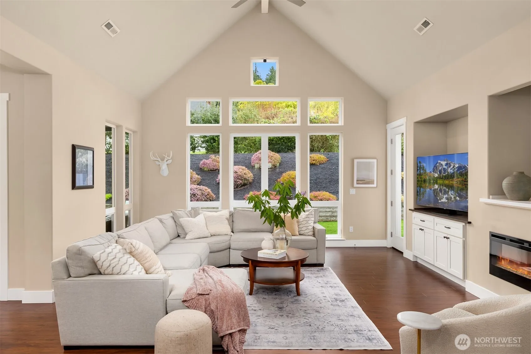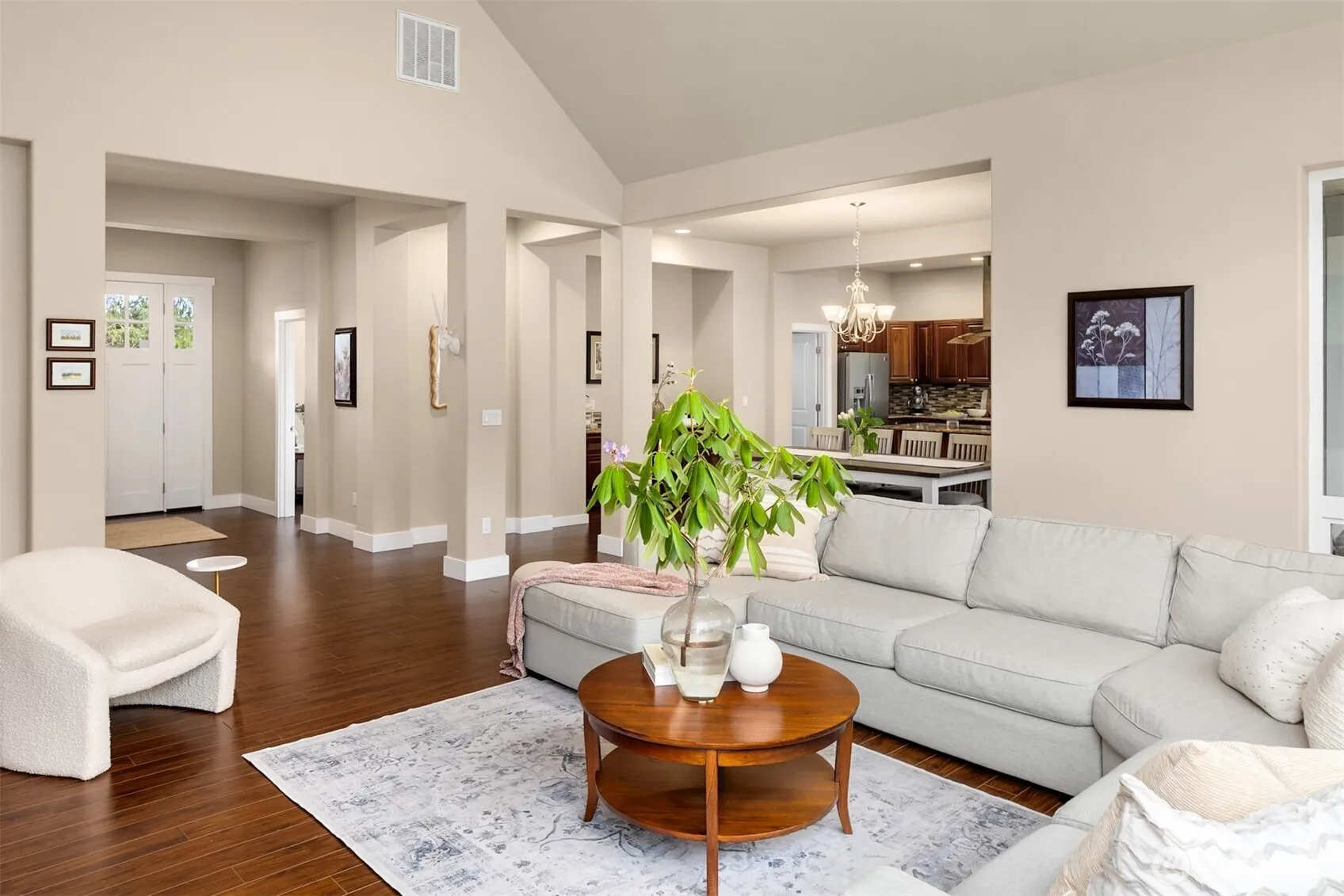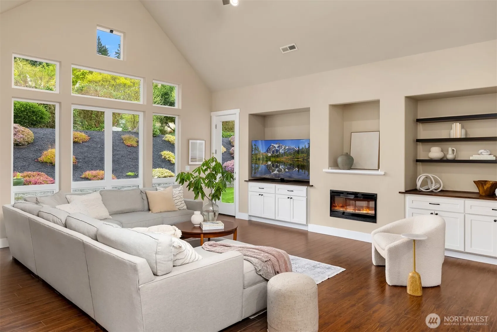 Located in the desirable White Horse Golf Community, this thoughtfully designed and meticulously maintained home offers a refined balance of comfort, style, and functionality. Light and bright the expansive great room features soaring 10-foot ceilings and warm, inviting finishes, creating an ideal setting for both everyday living and entertaining. The open-concept kitchen flows seamlessly into a spacious dining area with custom built-ins, while oversized glass doors open to a generous patio, providing effortless indoor-outdoor living. The main-level primary suite offers a private retreat with a large walk-in closet and a well-appointed five-piece bath. An additional main-level office or guest room is conveniently located just off the entry. Upstairs, two additional bedrooms, a full bath, and a spacious bonus room provide flexible living options. This beautiful home offers versatile spaces with a timeless Northwest aesthetic. Centrally located with a short drive to Kingston, Poulsbo, and Bainbridge with easy access to ferries. This is the one you have been waiting for!