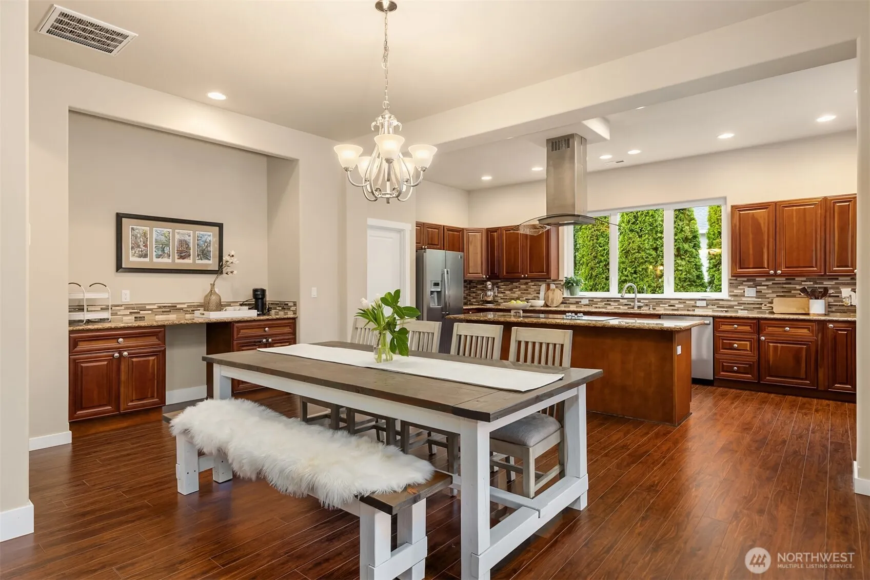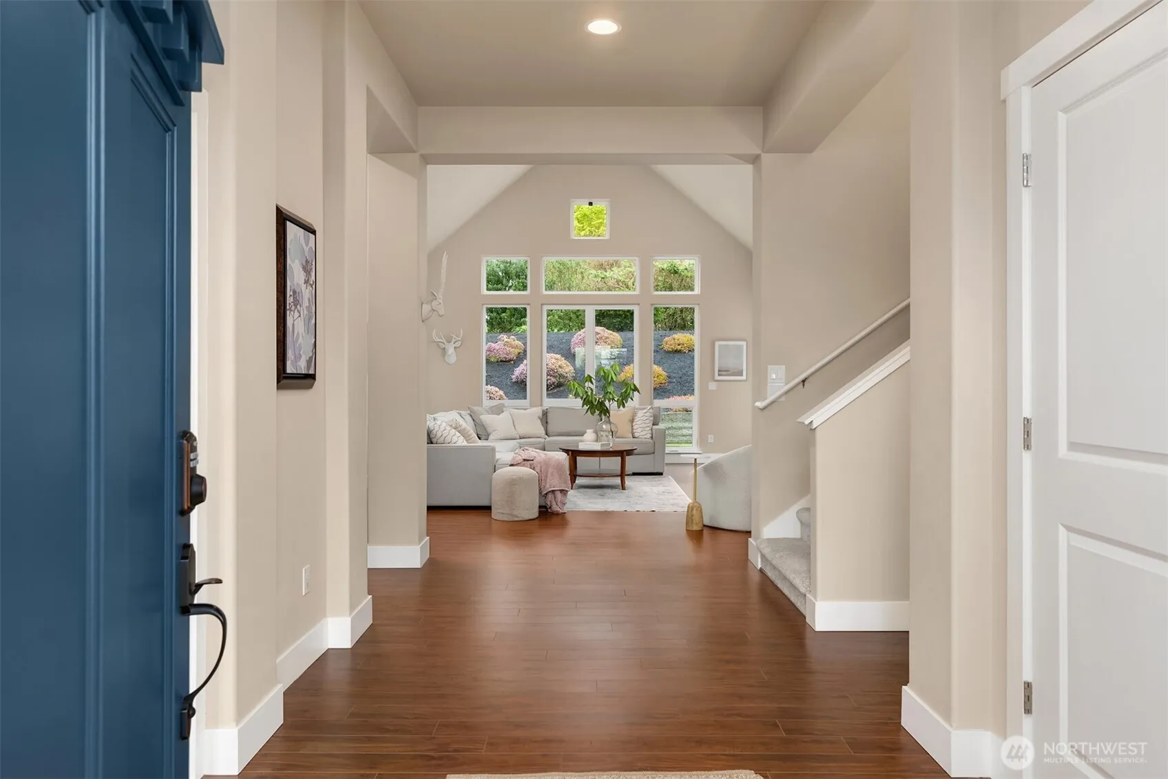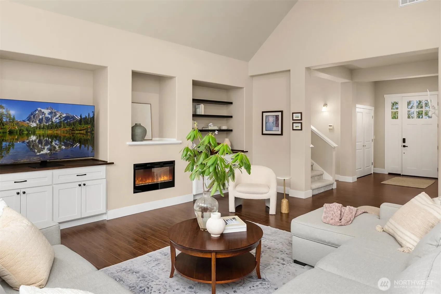 Located in the desirable White Horse Golf Community, this thoughtfully designed and meticulously maintained home offers a refined balance of comfort, style, and functionality. Light and bright the expansive great room features soaring 10-foot ceilings and warm, inviting finishes, creating an ideal setting for both everyday living and entertaining. The open-concept kitchen flows seamlessly into a spacious dining area with custom built-ins, while oversized glass doors open to a generous patio, providing effortless indoor-outdoor living. The main-level primary suite offers a private retreat with a large walk-in closet and a well-appointed five-piece bath. An additional main-level office or guest room is conveniently located just off the entry. Upstairs, two additional bedrooms, a full bath, and a spacious bonus room provide flexible living options. This beautiful home offers versatile spaces with a timeless Northwest aesthetic. Centrally located with a short drive to Kingston, Poulsbo, and Bainbridge with easy access to ferries. This is the one you have been waiting for!
