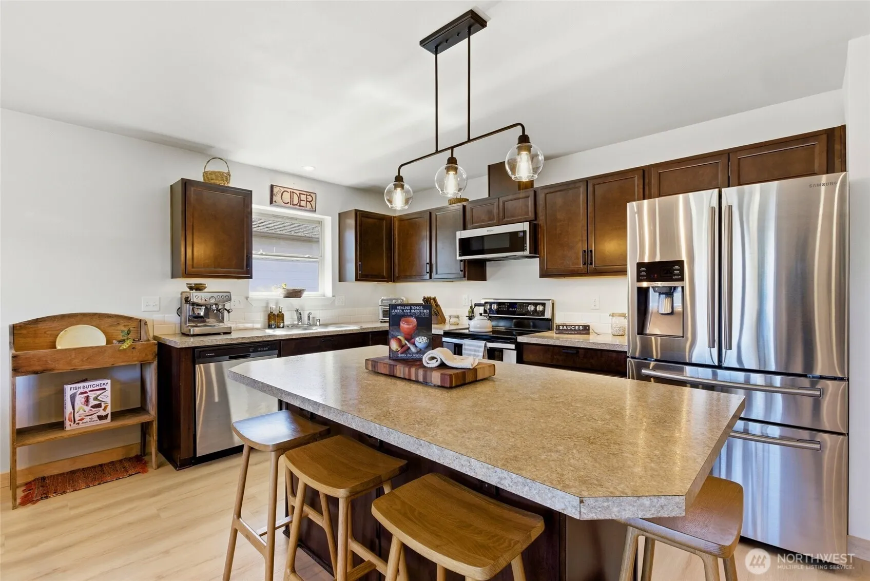 Tucked away on a quiet cul-de-sac in charming Kingston, this recently built home offers the perfect blend of modern comfort and Pacific Northwest lifestyle. Efficient, bright and thoughtfully designed, this open-concept home lives larger than its size, creating a spacious and inviting feel throughout. Updated lighting, new carpet, and new light oak plank flooring add warmth and a fresh, modern touch. The kitchen flows effortlessly into the main living area and features a central island with bar seating, which is ideal for everyday living, entertaining guests, or gathering with friends. Efficient ductless mini-split heating and A/C provide year-round comfort. Step outside to a large thoughtfully designed outdoor retreat, complete with a covered gazebo, side bar, firepit and hot tub, perfect for relaxing evenings or hosting unforgettable gatherings. Located just minutes from the Kingston ferry terminal, enjoy easy commuting with fast ferry access to downtown Seattle for work, sporting events, or a night out. The Edmonds ferry is also just a short ride away, connecting you to waterfront shops, restaurants, and breweries. Enjoy being walkable to nearby parks and access to extensive trail systems. Experience the charm of Kingston with its coastal feel, local dining, outdoor recreation, connection to the Peninsula and easy access across the water. Move-in ready and ideally located, this is a rare opportunity to enjoy comfort, convenience, and lifestyle all in one.