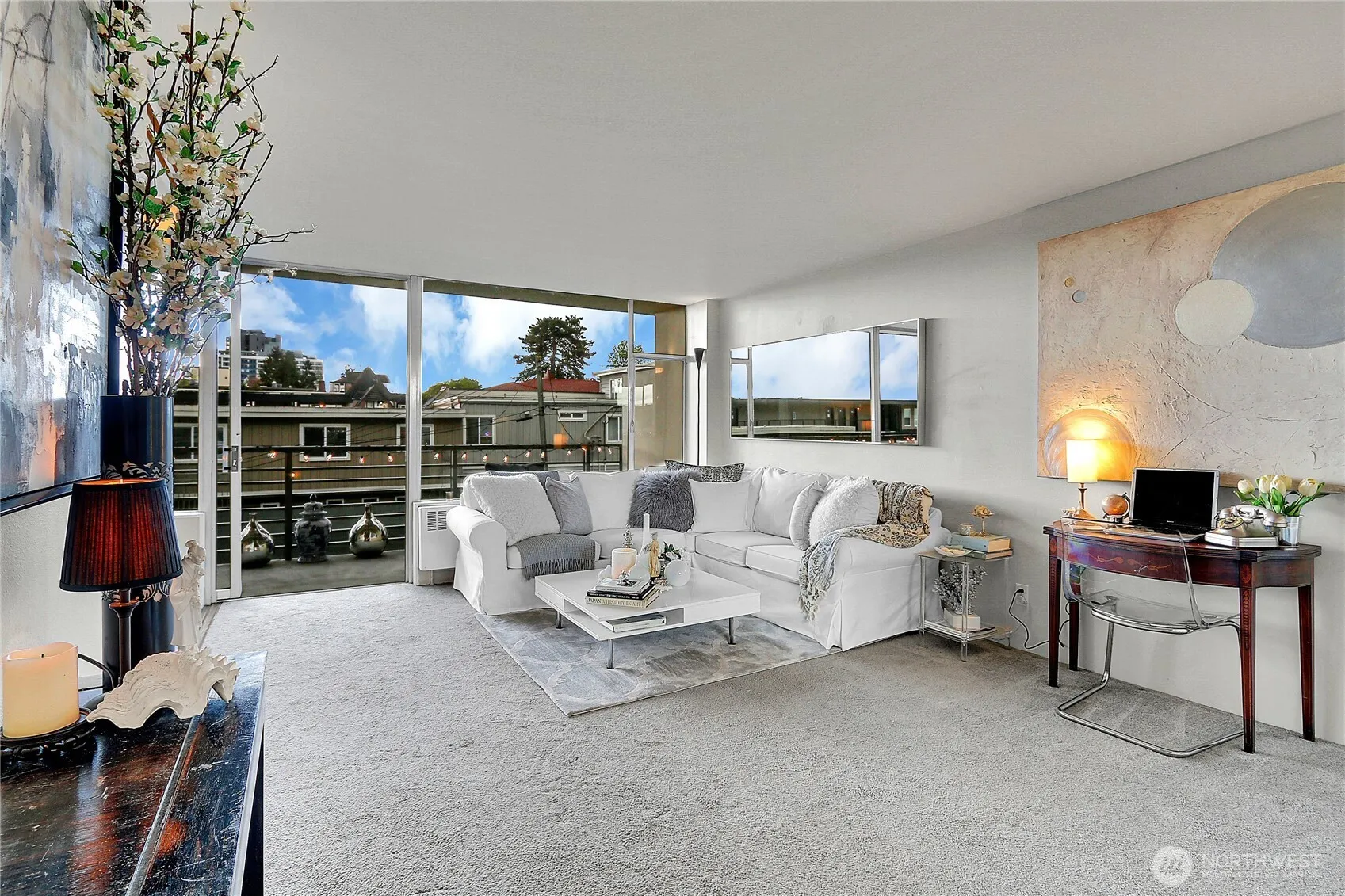 Just in time for Summer!!! Very rare opportunity to own a stunning 1BD/1BA waterfront unit in the coveted Lakeside West building. Great way to buy-in to the stellar, MadPark neighborhood. Perfect for investors, down-sizers, Sun/Snowbirds, or anyone searching for an adorable in-city pied-a-terre! Massive windows & a sprawling deck w/views of Lake WA, Bellevue & the Cascades. The open flrplan invites gatherings of all sizes. Huge bedrm w/sitting area. Steps from chic shops, coffee, and restaurants in the MadPark Village, beaches, trails and an EZ commute to Downtown and the Eastside! Launch your kayak/paddleboard from the private dock, or cruise to Kirkland for cocktails. Swim beach and dog run next door. Solid, well-run community with friendly, accommodating on-site manager. Secure parking and storage! Live here—Live cool!