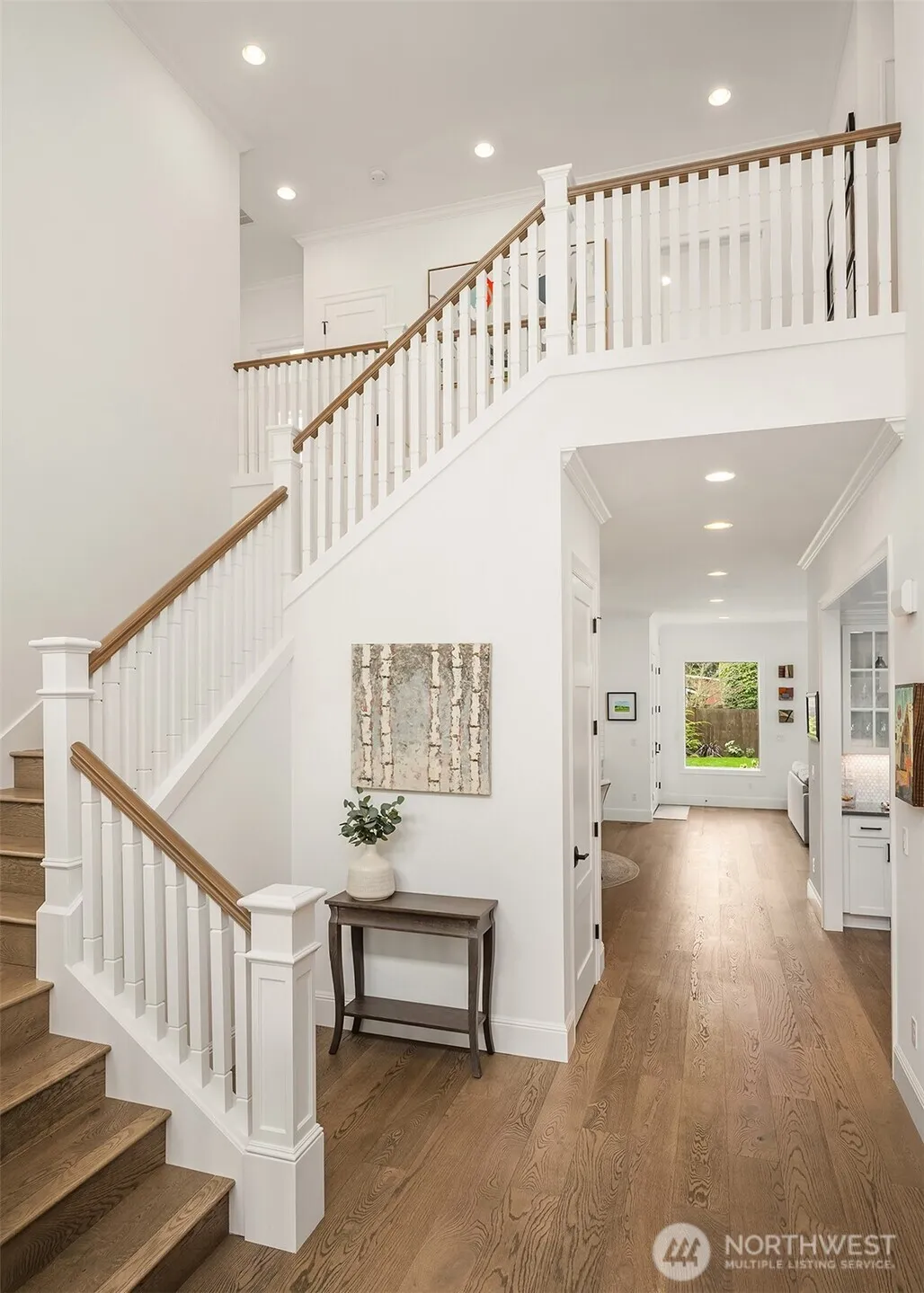 Built by MN Custom Homes, this stunning Woodridge home is thoughtfully designed with timeless elegance and exceptional living spaces. Well-curated for both everyday living and effortless entertaining. The dramatic vaulted great room anchors the main level, complemented by a luxurious entertainer’s kitchen with casual eating area and seamless access to a covered outdoor living area. The flexible main level includes a spacious bonus room and a private guest en-suite. Upstairs, the lovely primary suite showcases a spa-inspired marble bath and expansive walk-in closet, along with two additional bedrooms. This home is just moments from Norwood Park & Pool, Bellevue School District, downtown Bellevue, I-90, and beyond.