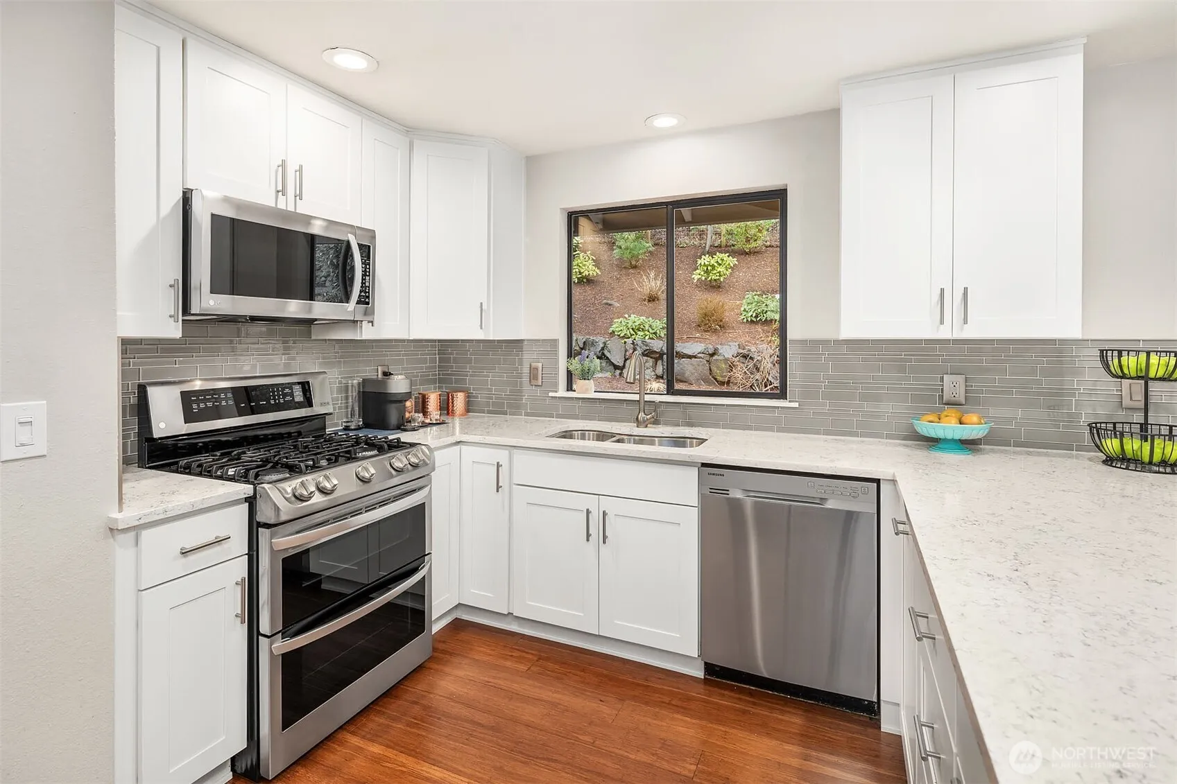 Experience the perfect blend of Mid-Century charm and modern updates in this stunning Mercer Island home. Bamboo floors flow seamlessly through open-concept living spaces, while skylights and expansive windows fill the home with warm, natural light. Thoughtfully designed with 4 bedrooms and 3 baths, this home offers both comfort and flexibility for everyday living and entertaining. Step outside to a beautifully terraced backyard—your own private Pacific Northwest retreat. Surrounded by lush native plantings, the outdoor space features a relaxing hot tub, a covered entertaining area for year-round gatherings, and a greenhouse for garden enthusiasts. Inside, enjoy year-round comfort with air conditioning, along with the convenience of a spacious, tricked-out 2-car garage complete with built-in storage and workbenches—perfect for hobbies, projects, or extra organization. Located in a flat, highly walkable neighborhood, this home is just moments from award-winning Mercer Island schools, local parks, the farmers market, and a vibrant selection of restaurants and shops. Whether you’re enjoying a quiet evening at home or exploring the community, this location truly offers the best of island living. A rare opportunity to own a timeless yet updated home in one of Mercer Island’s most desirable neighborhoods—don’t miss it!