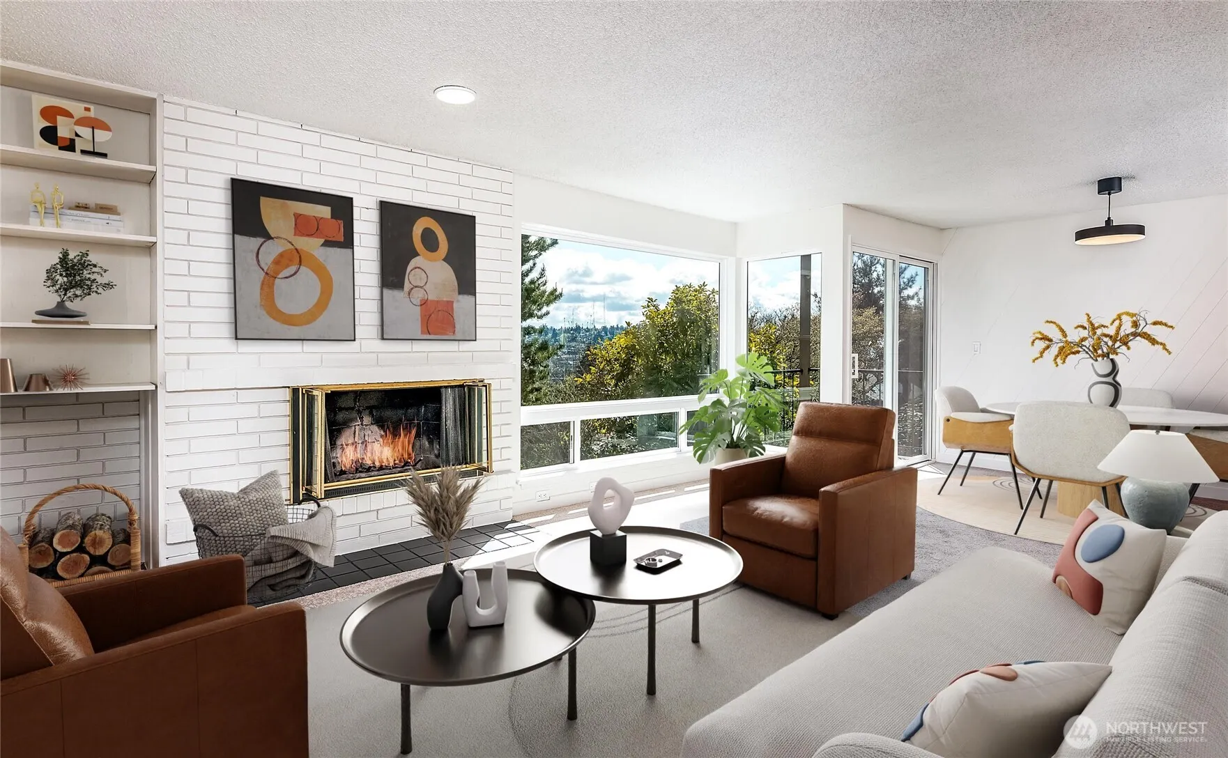 Welcome to this beautifully positioned, light-filled corner condo in the heart of Magnolia! Tucked within a quiet, well-maintained community of owners, this home offers a rare sense of privacy paired with the timeless charm of one of Seattle’s most beloved neighborhoods. Thoughtfully oriented with south and east facing windows, the space is filled with natural light year-round, enhanced by expansive, newly installed windows that brighten every corner. The open-concept layout lives larger than its footprint, featuring a spacious living area that flows seamlessly into a functional kitchen and dining space—perfect for both everyday living and entertaining. A cozy mid-century inspired wood-burning fireplace anchors the living room, adding warmth, character, and inviting Pacific Northwest ambiance. Thoughtful updates throughout include new windows, fresh interior paint, new flooring, updated lighting fixtures, an upgraded electrical panel, and newer appliances—making this home truly move-in ready. Step outside and enjoy the beauty of the Pacific Northwest, with mature landscaping featuring rose bushes and rhododendrons that enhance the peaceful setting. Just steps from Discovery Park, you’ll have easy access to miles of scenic trails, waterfront views, and nature escapes, all while being moments from Magnolia’s charming cafes, local shops, and convenient access to downtown Seattle. Experience the best of Magnolia living—peaceful, private, and close to it all. Welcome home!