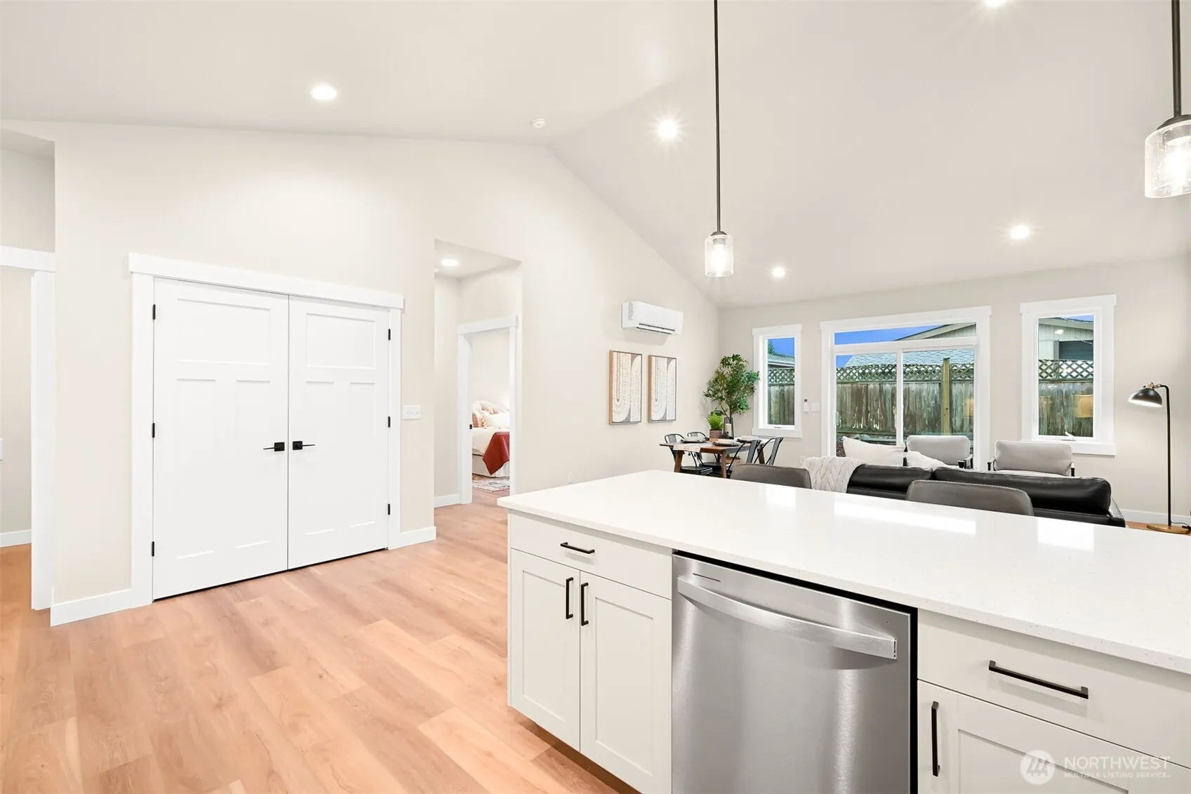 Single-level spacious luxury with absolutely ZERO steps. Brand New 55+ living situated at the end of a dead-end street in a gated community. Enclave of six new residences. Intelligent design captures the essence of true Northwest architecture with a modern flair. Generously sized windows & vaulted great room ceilings create a light & airy atmosphere. Magnificent chef’s kitchen fully loaded with quartz counter tops, stainless appliances, soft close drawers & under cabinet lighting. Spacious vaulted primary bedroom & a spa-like ensuite. Enjoy your own super private backyard with a patio, plus the convenience of an attached garage—all in a serene, quiet location. Efficient heating & A/C. Oversized 1 car garage with a lot of storage capacity & pre-wired for EV charger.
