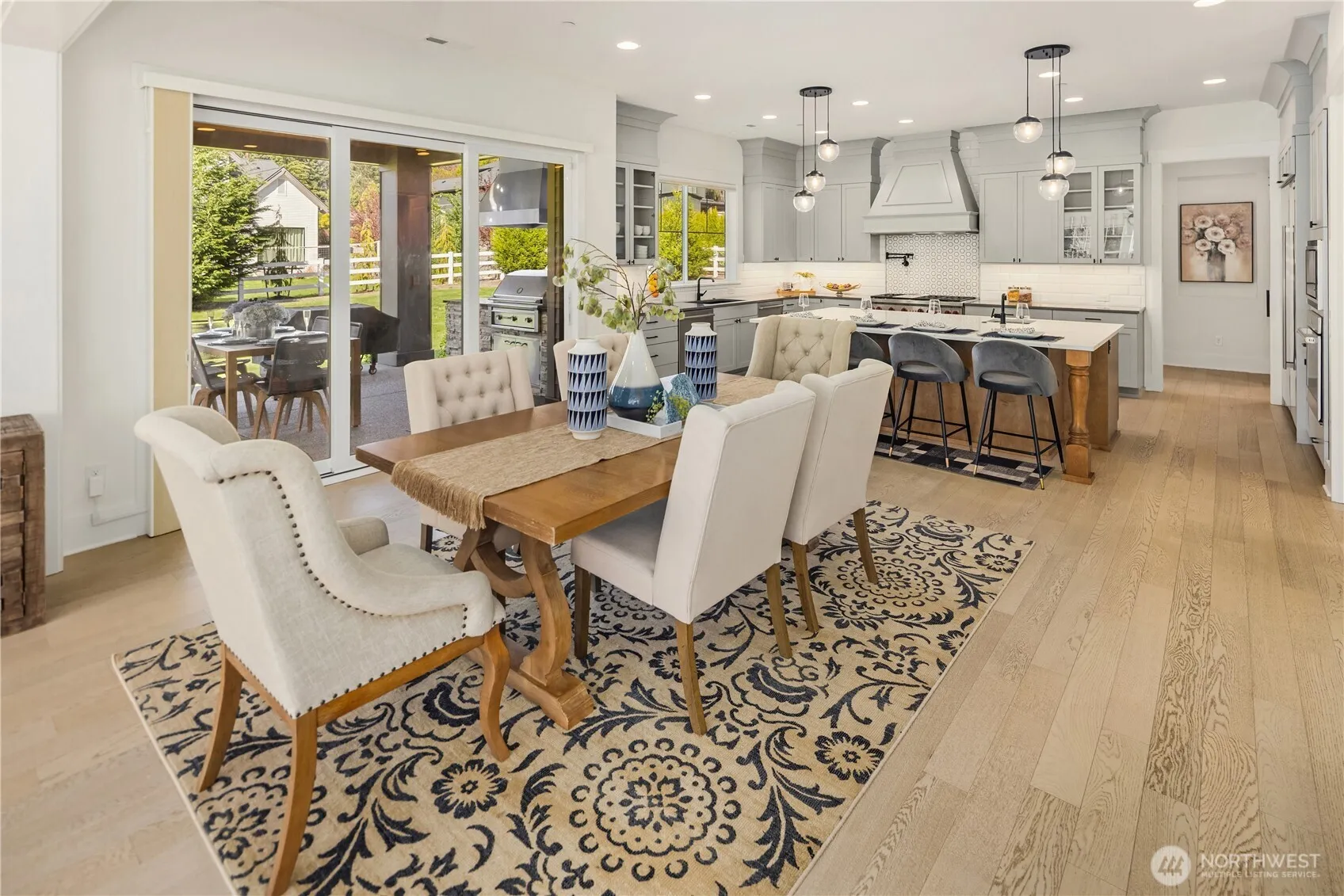 Welcome to this stunning custom-built home in a prime location, offering luxury, space, and exceptional amenities. Boasting 5,470 square feet of living space on a shy one-acre lot, this impressive residence features 5 bedrooms and 5.5 bathrooms, thoughtfully designed with comfort and elegance in mind. Step inside to experience the open-concept layout that creates a bright, inviting atmosphere throughout. Each bedroom includes its own walk-in closet, providing abundant storage and privacy.The gourmet kitchen is a chef’s dream, equipped with upgraded appliances, quartz countertops, and a large center island, perfect for cooking, entertaining, and gathering with friends. Enjoy premium lifestyle features including a private movie theater with equipment included, a spacious bonus room ideal for recreation or fitness, and an outdoor sports court perfect for year-round activity. Car enthusiasts and hobbyists will appreciate the 4-car garage, with one oversized bay suitable for boat parking. Located within top-rated Bellevue schools, this home also offers easy commuting access in all directions. Close proximity to tech hubs. Surrounded by nearby parks and scenic trails, this exceptional property offers the perfect blend of luxury living and outdoor lifestyle.