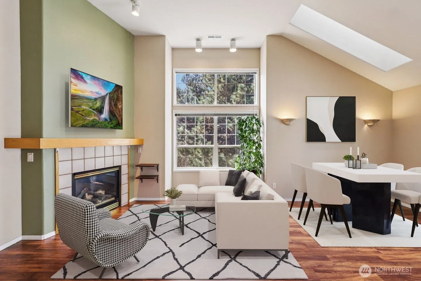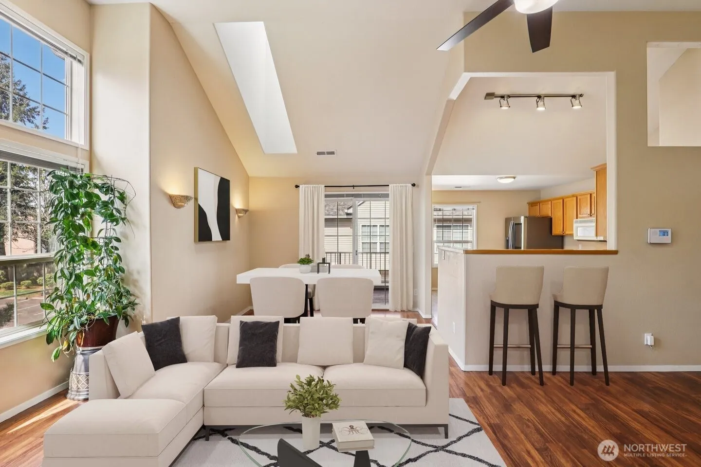Looking for a condo that lives LARGE with an open concept, large kitchen & dining area with balcony access? Welcome to Renaissance Condominiums! Experience extra high vaulted ceilings that frame an expansive living area complimented by a gas fireplace. The large kitchen features upgraded quartz countertops, & SS appliances. Easy to maintain, LVP & vinyl floors meet wall to wall carpet in two of the three large bedrooms. An extra finished room offers storage or a space for living needs. The large laundry room houses a washer and dryer that stay. Upgraded quartz counters in both bathrooms. Enjoy private access to the fenced back deck from both the spacious primary suite with walk in closet & third bedroom! You have a dedicated over-sized one car garage! Close to school, freeway and all amenities. Make this truly awesome find yours today!