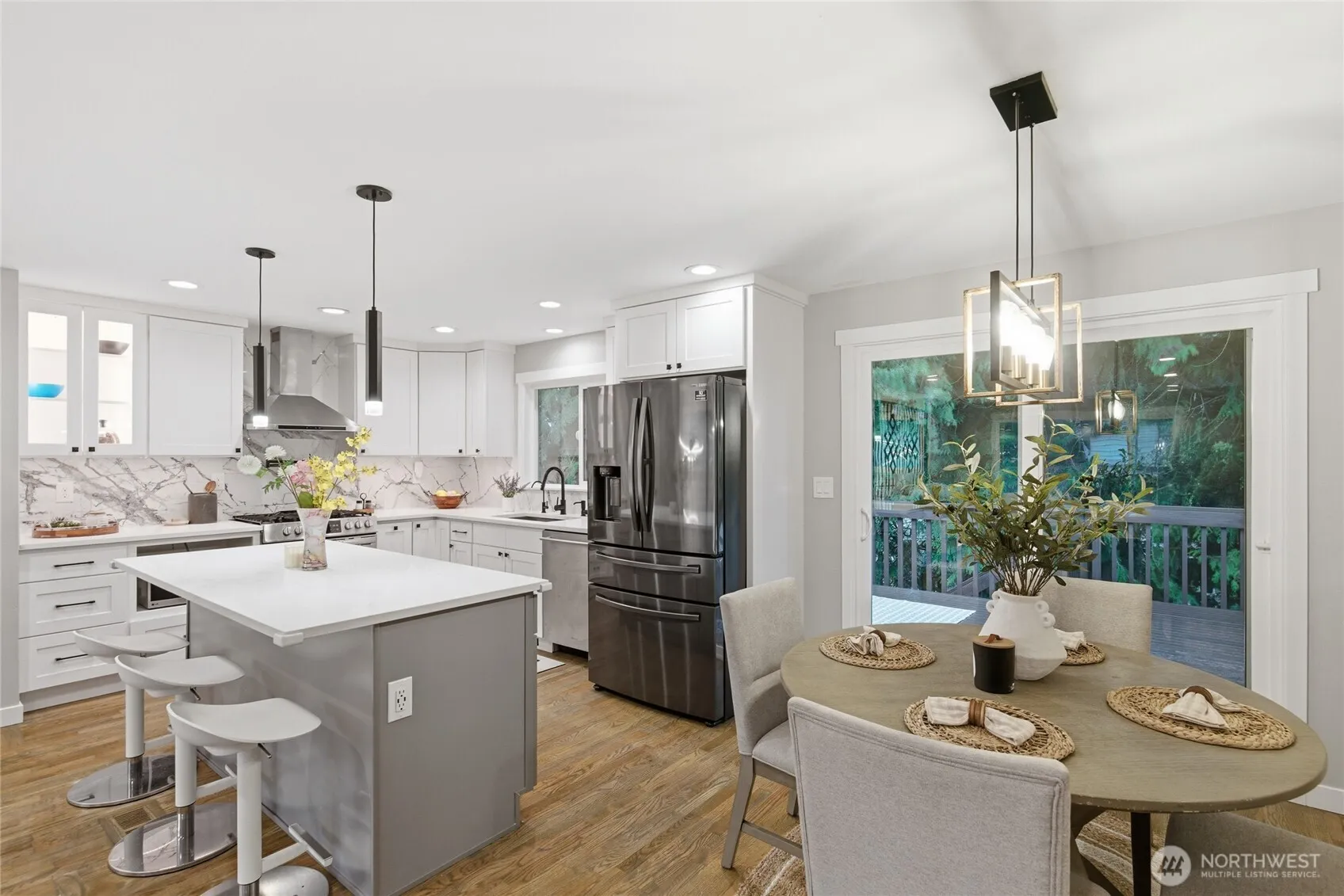 LOCATION! LOCATION! LOCATION! WELCOME to Fully REMODELED 4 Bed, 3 Bath home where luxury, comfort & location unite. Bright, open interior with maple hardwood floors, fresh PAINT & designer LED lighting. Stunning modern KITCHEN w/two-tone cabinetry, Calacatta quartz counters & backsplash, high-end appliances, clean, classy ISLAND and open access to a spacious dining room and deck—perfect for BBQs & outdoor living. Living room features marble-accented wood-burning fireplace; PRIMARY SUITE boasts custom built-ins, walk-in closet, and spa-like bathroom with freestanding tub, marble walls, double sink, separate shower, & luxury STONE HEATED FLOORING. Downstairs FAMILY room includes antique marble fireplace, open space, OFFICE & GYM rooms. NEW WINDOWS, DOORS, KITCHEN, BATHROOMS, ELECTRICAL, PLUMBING, FURNACE with AC, and front SIDING replaced with Hardie plank siding, INSULATION and more. Well-maintained 7-year-old ROOF. Fully fenced 7,405 sq. ft. lot with patio, deck & large workshop. RV/Boat and extra parking. Pre-inspected and completed for peace of mind—MOVE-IN READY! Steps to shopping, dining, and the new light rail extension, minutes to I-405 & I-5. Don’t miss this perfect blend of style, space & convenience in coveted Edmonds SD!