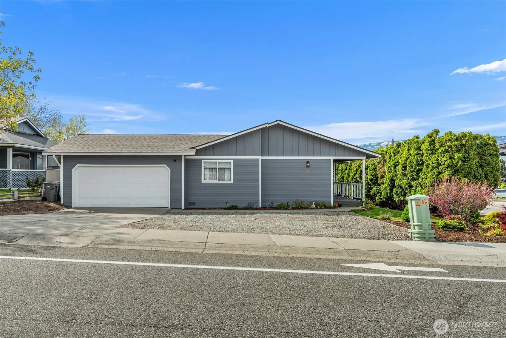 This immaculate, fully renovated home sits in the heart of East Wenatchee, offering the perfect balance of convenience and privacy. Thoughtfully redesigned from top to bottom in 2024, it blends modern finishes with timeless charm throughout. Step onto the inviting front deck an ideal spot to relax and take in all seasons. Inside, vaulted ceilings and an elegant electric fireplace create a bright, welcoming living space. The kitchen is both stylish and functional, featuring stainless steel appliances, generous counter space, and ample storage to meet all your needs.The home includes three well-sized bedrooms, highlighted by a stunning primary suite. The en-suite bathroom feels like a private retreat, complete with double sinks, crisp white cabinetry, quartz countertops, a walk-in shower, and a beautiful freestanding soaking tub. Outside, the property is just as impressive. Enjoy a thoughtfully landscaped yard with raised garden beds, lush plantings, a private patio area, irrigation water and plenty of seclusion. An attached two-car garage and an oversized storage shed provide exceptional additional space. This turnkey home offers comfort, style, and privacy in a central location.