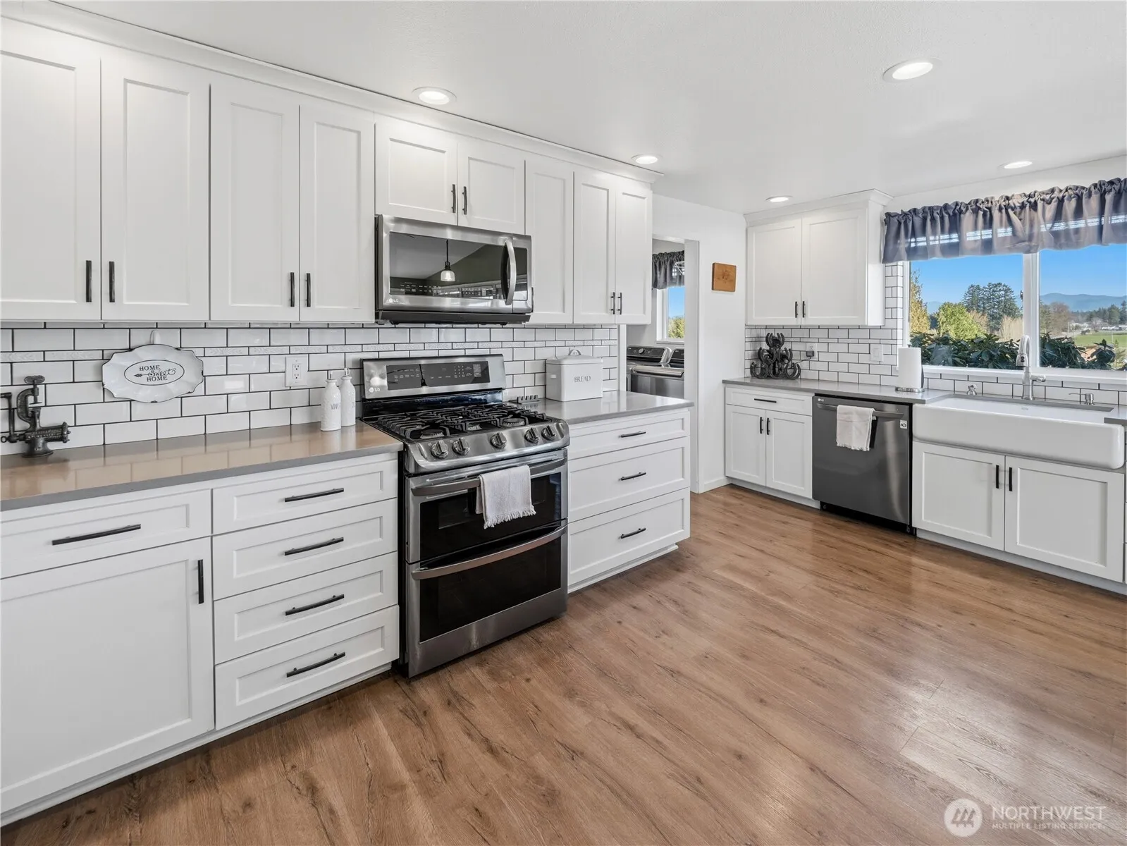 Unobstructed Mt. Rainier & foothill views from this beautifully updated 3-bed, 2.25 bath Wabash rambler on a perfectly laid out, fenced & cross fenced shy 3-acre parcel. Stunning kitchen remodel w/ Shaker style cabinets, huge island, SS appliances, farm sink, Quartz countertops and amazing views. Vaulted great room w/ wood stove insert. Additional living room w/ back deck access & free-standing gas stove. Primary bed w/ private .75 bath. An exceptional property for your equestrian needs and or your all-inclusive hobby farm w/ 4-stall barn, tack room, hay storage, open loafing shed, private well, fertile soils, multiple garden beds, apple/pear/plum orchard, chicken coop, goat pen, abundant privacy, plus a perfect firepit area among the tall firs. Detached 30′ x 40′ shop w/ 70A power & woodstove. Significant recent updates include: New vinyl windows in 2025, new heat pump in 2024, new roof/gutters on home & shop in 2023 (w/ transferrable roof warranty). Just 1-mile down a quiet country road to the O’Grady’s Park trail system, no need to trailer 🙂 Seller offering a $15,000 credit for Buyer’s closing costs and or rate buy down!