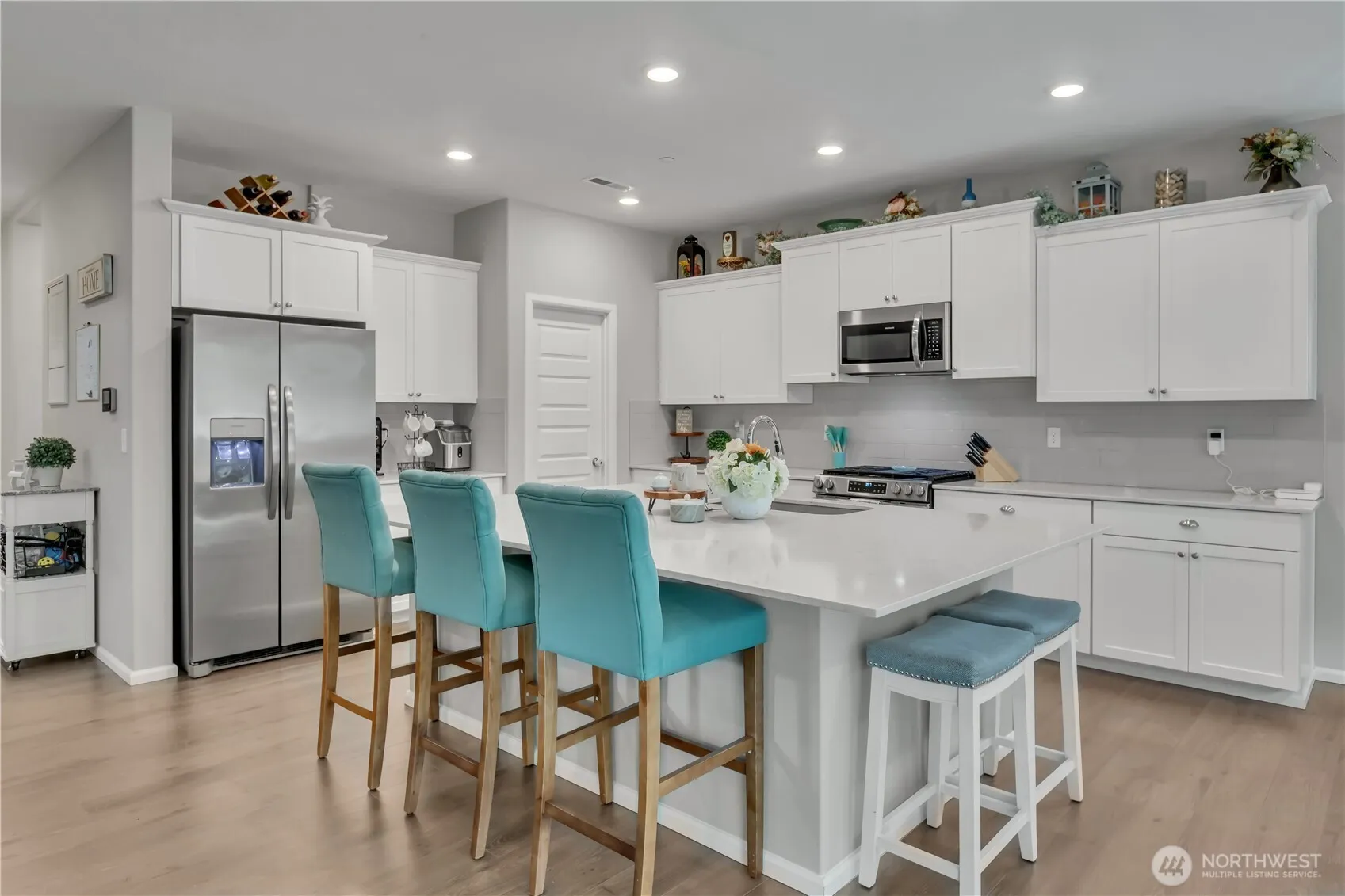 Welcome to this like-new Lennar resale in the highly sought-after Soundview Estates community! Offering 3,081 sq ft of thoughtfully designed living space, this stunning 5-bedroom, 3-bath home blends comfort, functionality and modern style. A desirable main-floor bedroom provides the perfect setup for guests, multi-generational living, or a private home office. The heart of the home is the impressive chef’s kitchen, featuring a gas range, stainless steel appliances, slab granite countertops, an oversized island with plenty of seating and a spacious walk-in pantry. The open-concept layout flows seamlessly into the dining and living areas, highlighted by engineered hardwood flooring and soaring vaulted ceilings that create a bright, airy feel. Upstairs, retreat to the expansive primary suite complete with a massive walk-in closet and a luxurious 5-piece ensuite bath, including a large soaking tub. Additional bedrooms are generously sized and the large bonus room offers incredible flexibility for a media room, playroom, or additional living space. This home is loaded with storage throughout, including extra space in the garage, ensuring everything has its place. Step outside to enjoy the fully covered back patio, perfect for year-round entertaining that overlooks a private backyard that backs to peaceful wooded surroundings for added tranquility and privacy. Ideally located near Navy bases, freeway, ferries, amenities and parks, this home truly has it all!