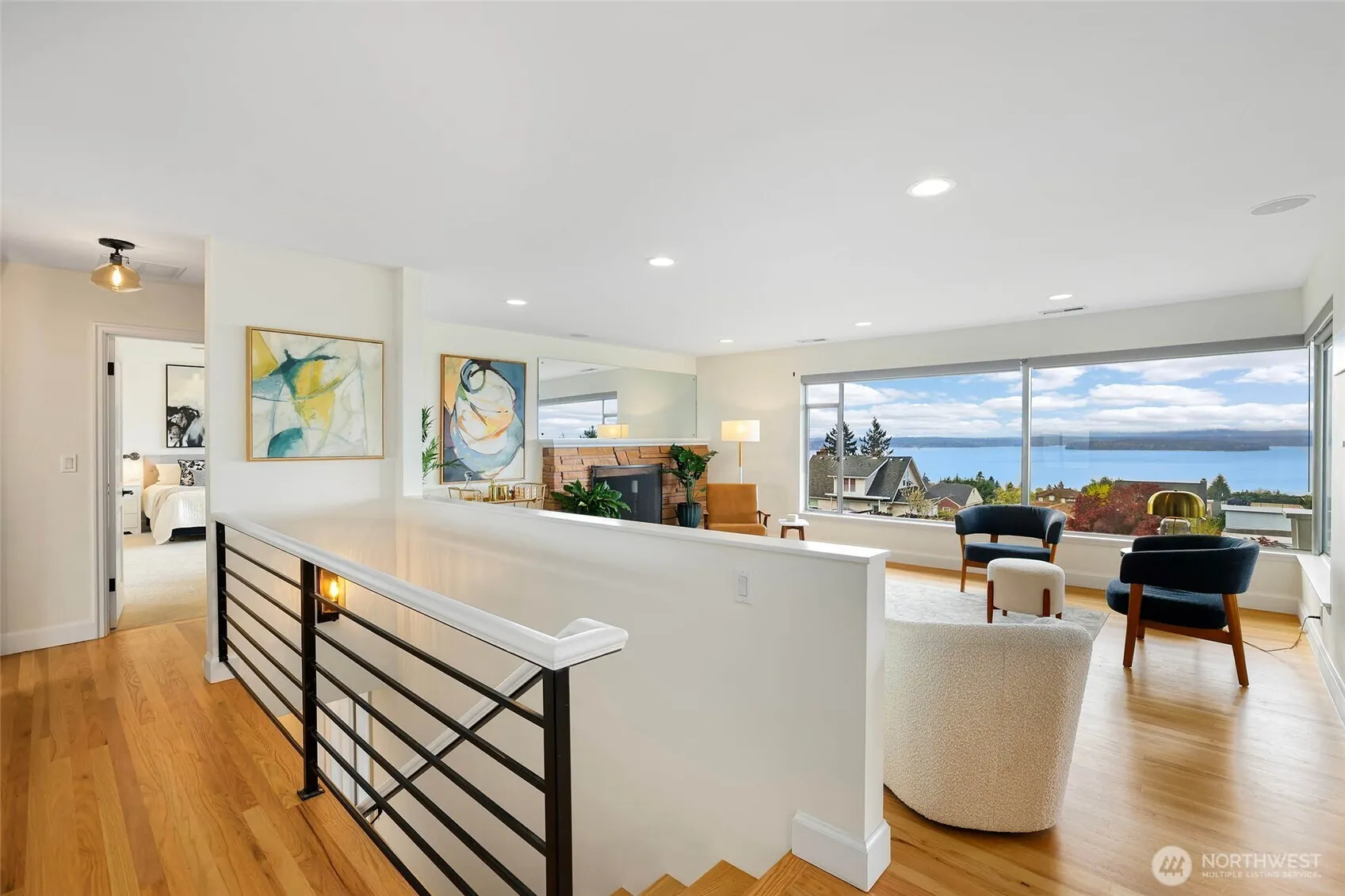 Beautiful at every hour, every season, in every kind of weather, an ever-changing landscape of water, mountains, and sky that offers something new each time you look. Serene. Unobstructed. Endlessly, wirelessly yours. Perched on coveted Gatewood Hill, this corner-lot 1944 classic commands sweeping, wireless panoramas across the Puget Sound that follow you from room to room, through sun-warmed main-level living, gorgeously refinished hardwoods underfoot, past the original tiled bath that speaks quietly of a craftsmanship worth honoring. The primary suite is a sanctuary in every sense: two closets, exquisite tile, and a view so persistent and so generous it stays with you all the way to the soaking tub. The lower level unfolds with the same easy grace: a sprawling rec room, a view-framed office or fourth bedroom, a 3/4 bath, a utility room, fresh carpet, and an attached two-car garage, all of it anchored by that same endless horizon you fell for at the front door. Outside, a beautifully fenced front yard gives way to a private courtyard where a spa awaits its future, pavers already laid, the stage already set, and a path that leads you seamlessly from that outdoor sanctuary directly into the primary bath, as though the home itself anticipated every indulgence. Brand-new fencing and fresh landscaping complete a property that wears its polish naturally, without effort. Gatewood Hill has long been one of West Seattle’s most coveted addresses. This is exactly why.