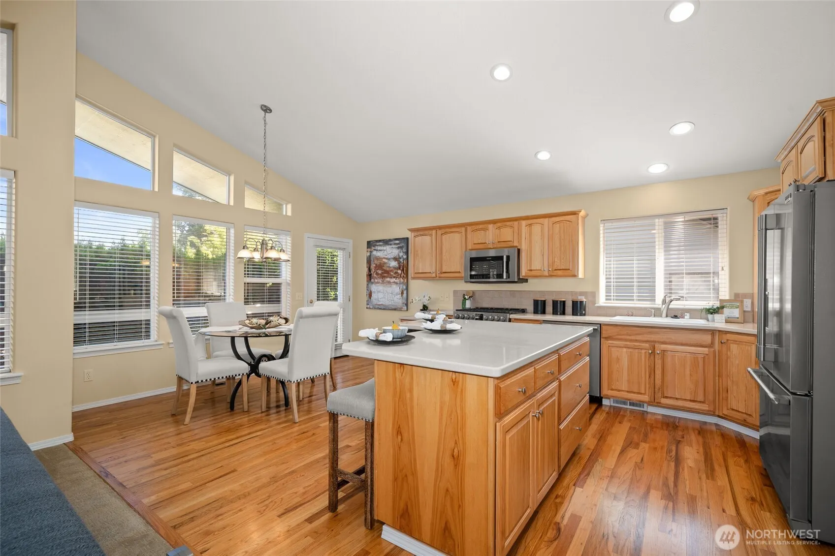 Discover effortless main floor living in this custom-built zero step 3 bed, 3 bath rancher with a 2-car garage situated in the highly desirable Woodfield gated community. Walk in your front door where you are greeted with vaulted ceilings, open concept living room with gas fireplace & wet bar, kitchen with high end stainless steel appliances, island & walk in pantry, a spacious great room & both formal & informal dining. Enjoy two primary suites, each with walk-in closets & ensuite bathrooms, plus a third bedroom ideal for a guest room or office. Relax on the covered back deck or take advantage of the community rec center & refreshing saltwater pool. Conveniently located near shopping, dining, parks, & Manito Golf & Country Club.