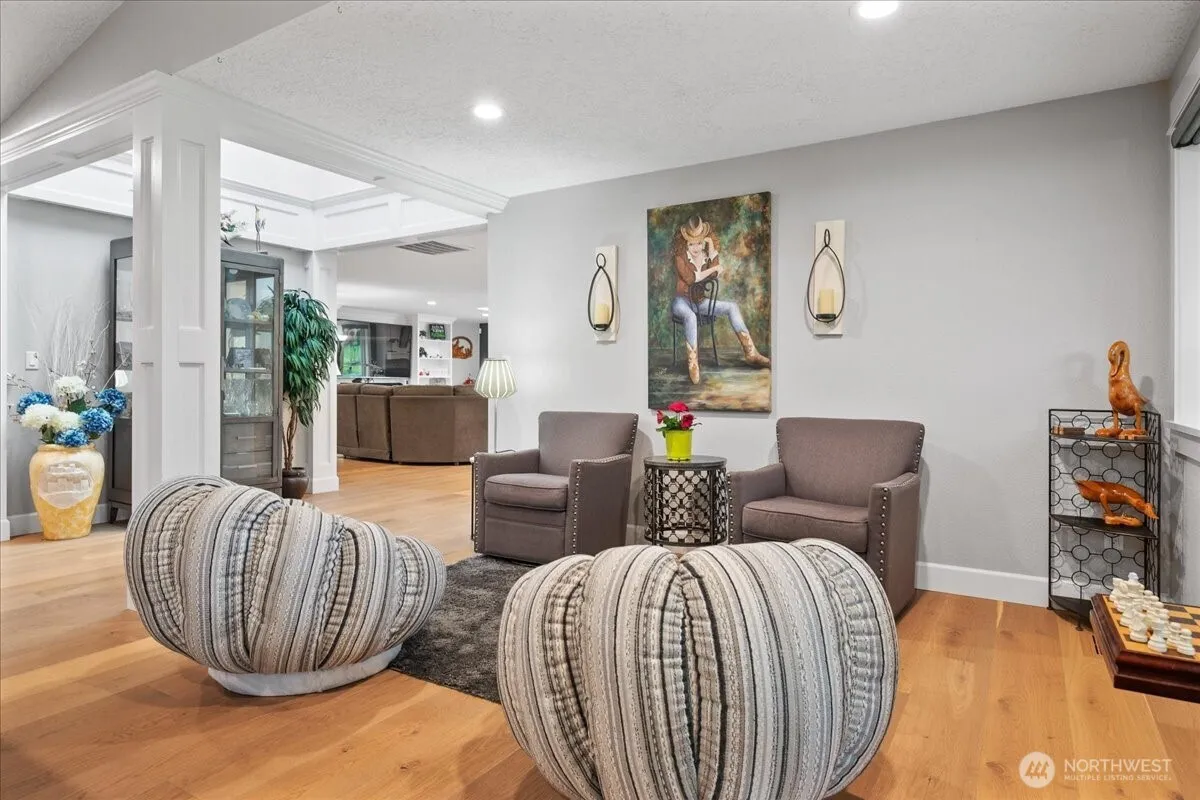Beautifully renovated single-level home on Green Meadows Golf Course. Gorgeous modern kitchen with walk-in pantry (dual sinks), induction cooktop, and pass-through windows to the covered patio. Updated 2.5 baths with heated floors, hardwoods throughout, and carpet in two bedrooms. Great room features built-in entertainment center plus gas & electric fireplaces. Recent upgrades include new HVAC, electrical panel, updated plumbing, electric blinds, and epoxy garage floor. Enjoy a stunning outdoor living space overlooking the 6th tee box—serene views without golf-ball impact. Move-in ready, furnishings available and even a golf cart with strong offer, stylish, and perfectly positioned for easy indoor-outdoor living. The nicest home in the neighborhood if you prefer one level!