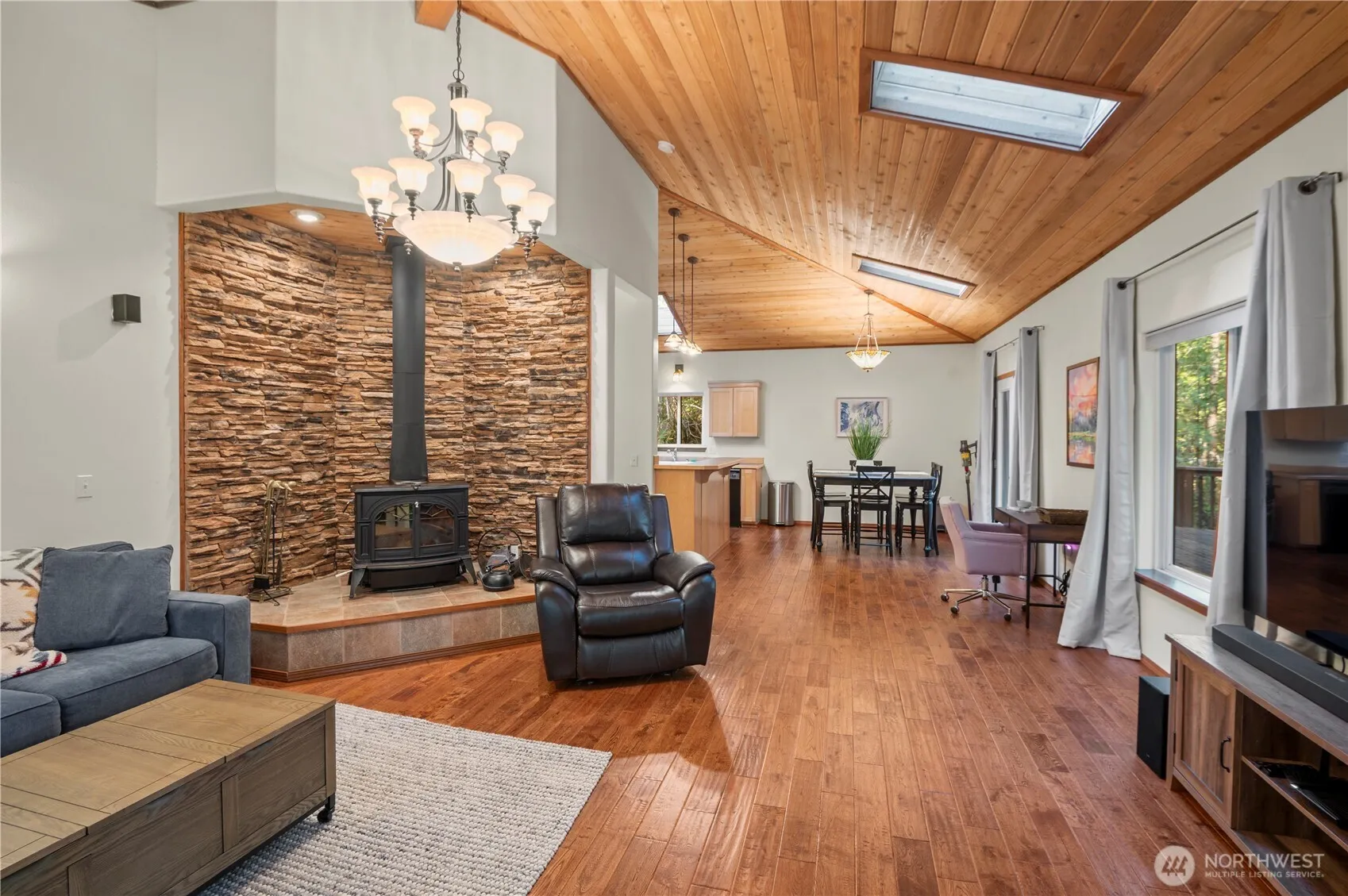 Tucked among the towering evergreens of Lake Cushman, this inviting 2-bedroom retreat welcomes you with warmth, light, and unmistakable Northwest charm. The home’s distinctive roofline rises above the main living space, where a band of transom windows pours natural light across vaulted ceilings and rich wood tones – creating an atmosphere that feels both cozy and uplifting from the moment you step inside. At the heart of the home, the open living area gathers around a charming stone-framed freestanding stove, the perfect place to unwind after a day on the lake or exploring the Olympic National Forest’s endless labyrinth of hiking trails. The thoughtful layout flows effortlessly to the expansive deck, where mornings begin with quiet forest air and evenings are spent relaxing beneath the trees. Outside, an oversized detached two-car garage provides generous space for vehicles and lake toys, keeping everything ready for the next spontaneous adventure. Located on a sunny corner lot just a short stroll from the coveted Division 3 park and boat launch, you’ll enjoy easy access to one of Lake Cushman’s most breathtaking settings, where sweeping lake and mountain views frame swimming beaches, picnic areas, playgrounds, and waterfront gatherings. Whether you’re searching for a peaceful full-time residence or the perfect weekend escape, this charming Cushman retreat offers a place where lake days, mountain adventures, and quiet forest evenings become part of everyday life.